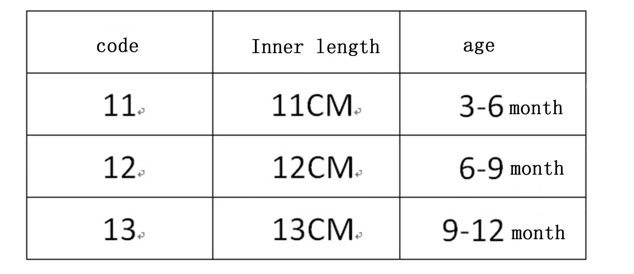 0 To 6 Months Sole Length Of About 11cm 6 To 12 Months Sole Length Of About 12cm 12 To 18 Months Sole Length Of About 13cm