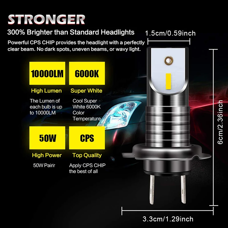 Особенности: * 100% новый и высокое качество * H7 110W Автомобильный 5050 CSP светодиодный комплект фар * Ярче, чем галогенные/Ксеноновые лампы для фар * Холодный белый 6000K 30000LM 110 Вт в комплекте (15000лм/Лампа, 55 Вт/лампа), более мощный, чем галоген, выход может соответствовать или превышать те из aftermarket 55 Вт HID комплекты, экономия большей энергии * Полностью алюминиевый корпус и быстрое охлаждение, не требуется балласт или драйвер * Охладитель, чем стандарт, обеспечивает безопасный диапазон температуры и длительный срок службы до 50000 часов * Водонепроницаемый: IP68, может использоваться в любых условиях воды * Более стабильная производительность, Рабочая температура-40 °C ~ + 80 °C * Быстрый запуск; Быстрое включение/выключение времени отклика * Простая установка: все в одной модели, такие же, как оригинальная автомобильная лампа, подключи и работай * Идеальная модель луча на 360 градусов: Добавьте трубку из кварцевого стекла с высоким коэффициентом пропускания, увеличивая освещение ангела с 120 градусов до 175 градусов, устраняя темные зоны * Быстрая вкл/выкл, нет "разогрева" * Экономия энергии 70% по сравнению с обычными галогенными лампами и имеет срок службы в 3 раза дольше, чем они * IP68 Номинальное уплотнение воды и пыли, угол луча 360 градусов