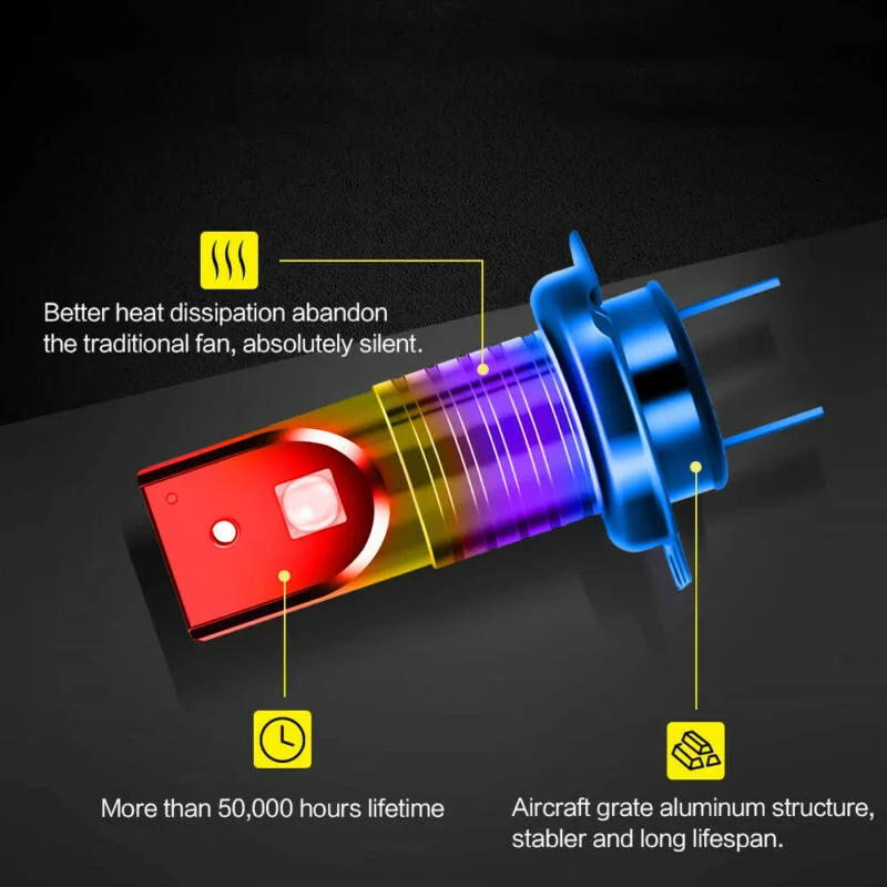 Преимущества по сравнению с галогенными и HID лампами: -Быстрое включение/выключение, нет "разогрева" -Экономия энергии 70% по сравнению с обычными галогенными лампами и имеет срок службы в 10 раз дольше, чем они. -Законная установка. Не беспокойтесь о законах штатов.