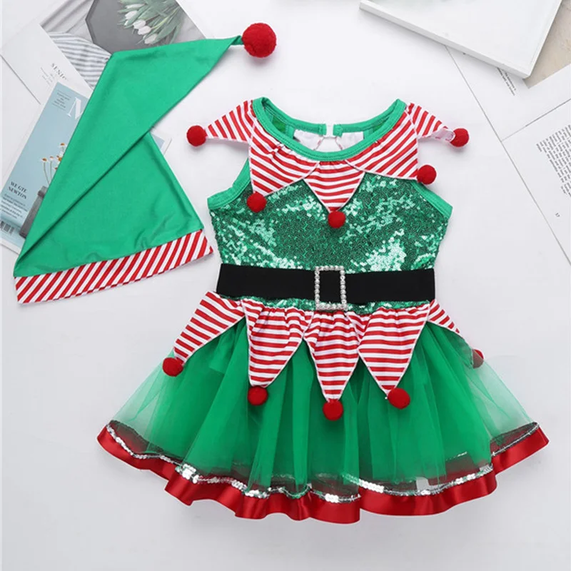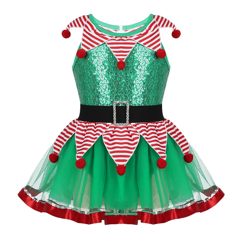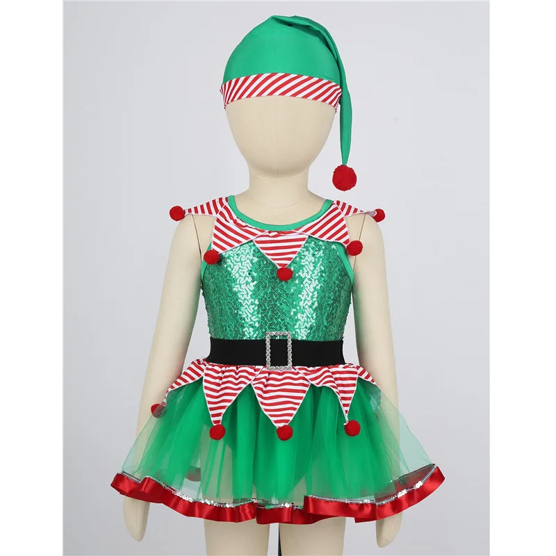 Детский Рождественский костюм феи для выступлений; Сетчатое балетное гимнастическое платье-пачка без рукавов с блестками и баской