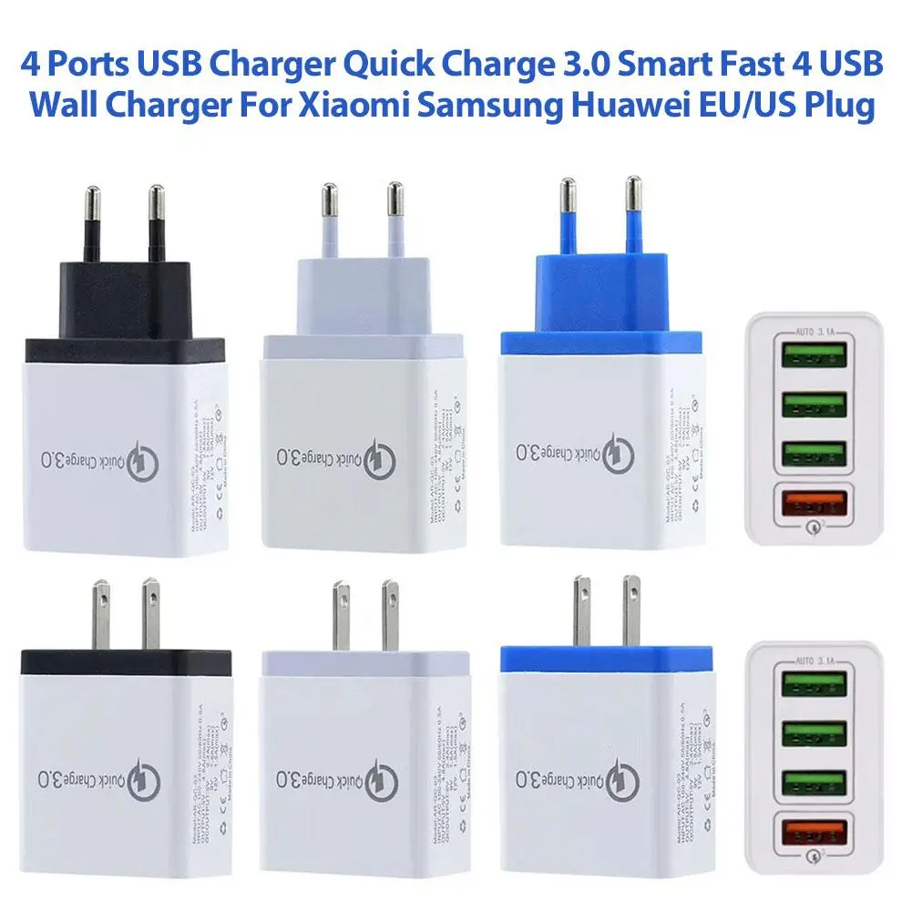 4 USB Mobile Phone Flash PC Fireproof Material Charger Quick Charge QC3.0 Fast Port EU Plug US Travel #GJ | Мобильные телефоны и