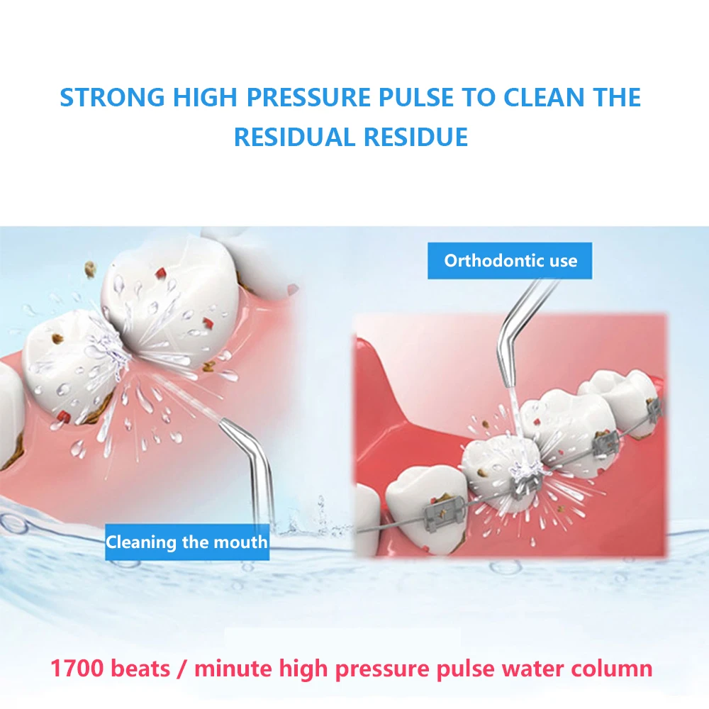 3. Уникальные водяные зубцы используют принцип давления воды и пульса, чтобы полностью удалить вредные бактерии в деснах и глубоких зубах, которые недоступны для традиционных зубных щеток и нити.