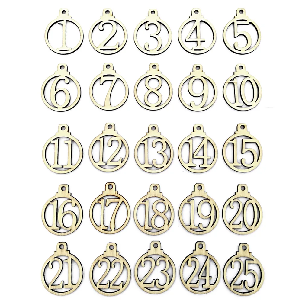 Каждый набор состоит из 25 деревянных подарочных тегов, каждый пронумерованный для обратного отсчета до Рождества