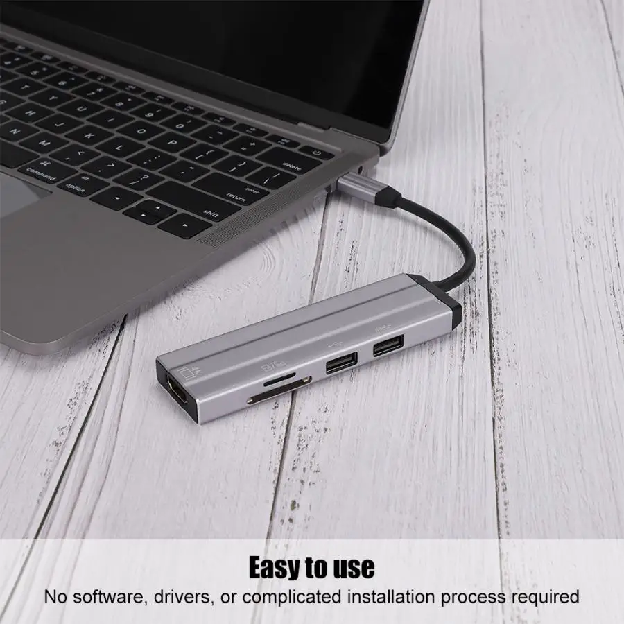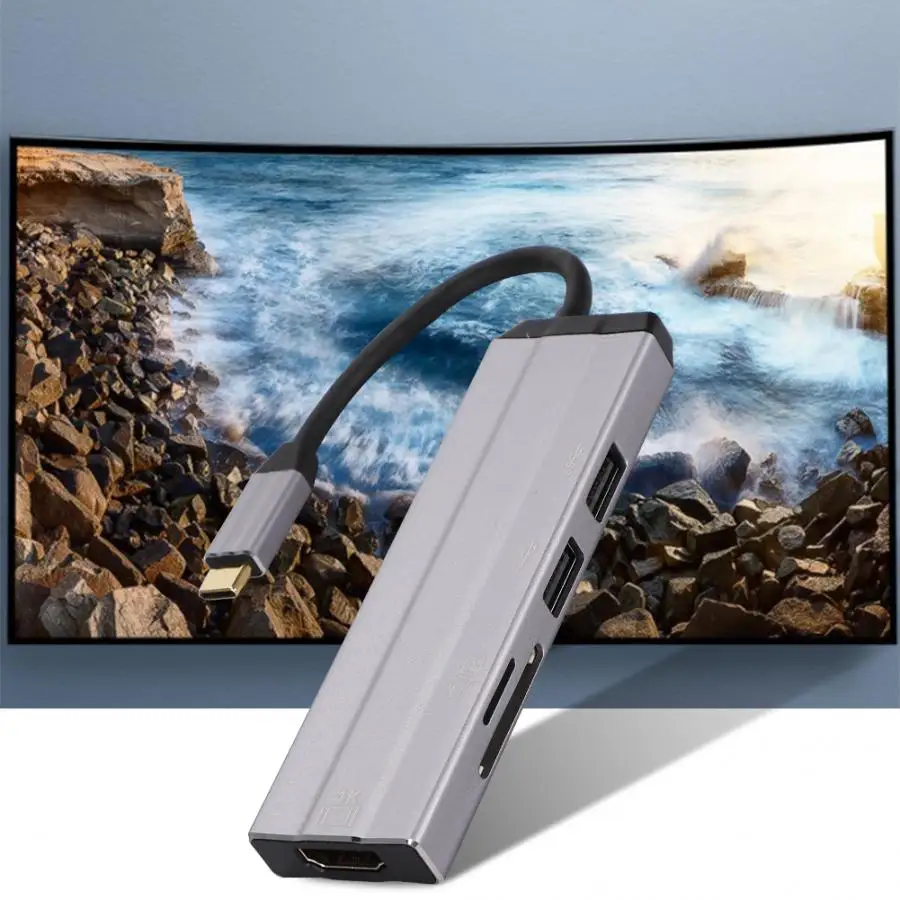 6 в 1 Type-c TF + безопасная цифровая карта памяти + USB2.0 + USB3.0 + HDMI + USB-C PD расширительный Док-концентратор