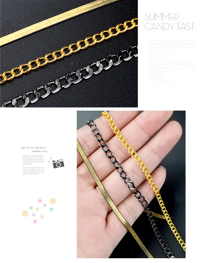 100% новая форма: Змеиная кость/черный/золотой цвета: металлическое золото Длина: 1 м дизайн: сплав для дизайна ногтей металлические цепочки Золотые 3D Подвески украшения шпильки Spangles панк змеиная кость страз украшения для маникюра комплектация: 1 УФ гель лак для ногтей, цепи