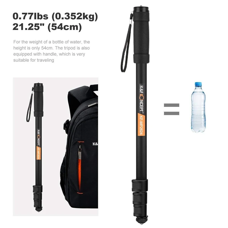 67-дюймовый легкий монопод KF-MP2624 обеспечивает поддержку и стабилизацию при использовании камеры или видеокамеры для занятий спортом, мероприятий и многого другого.