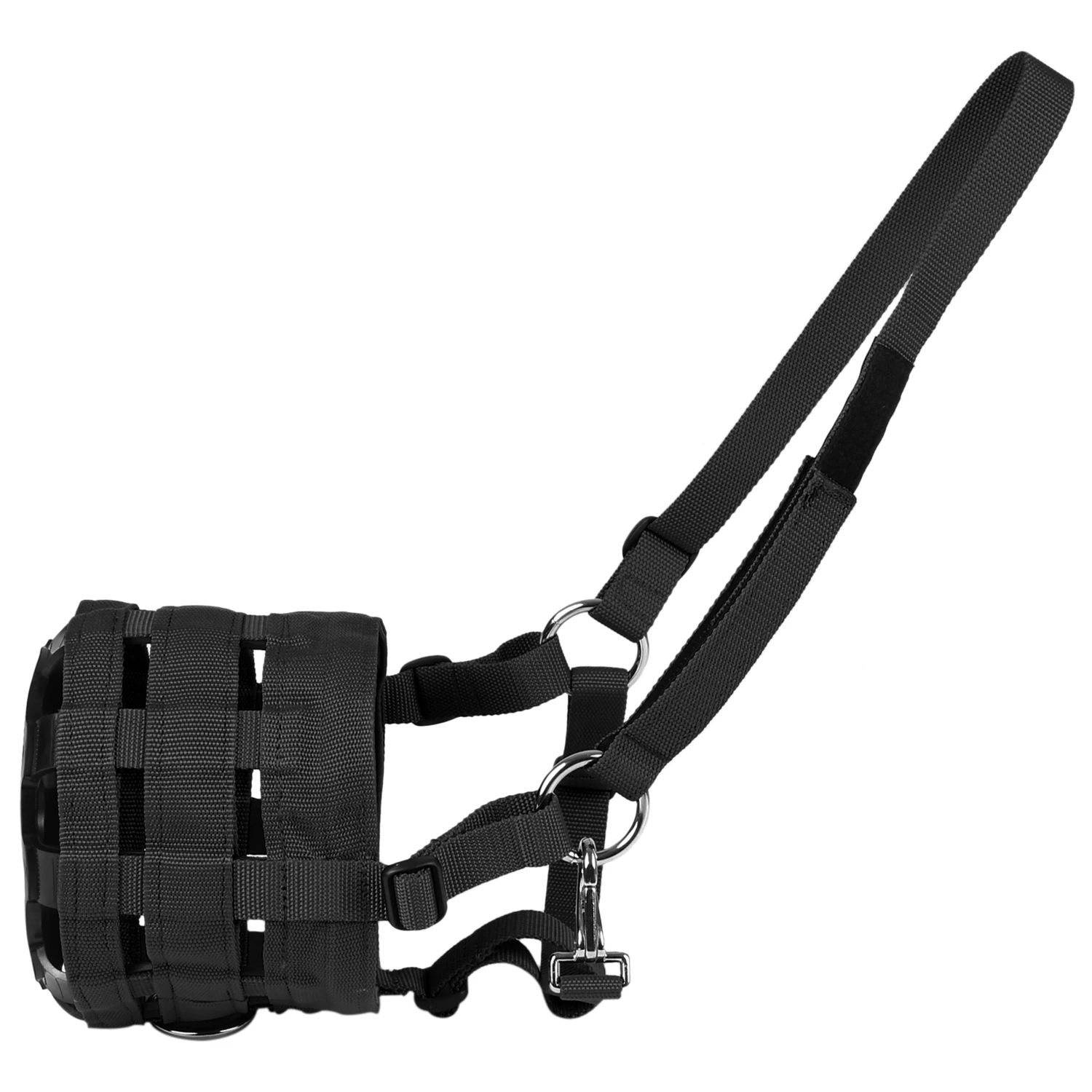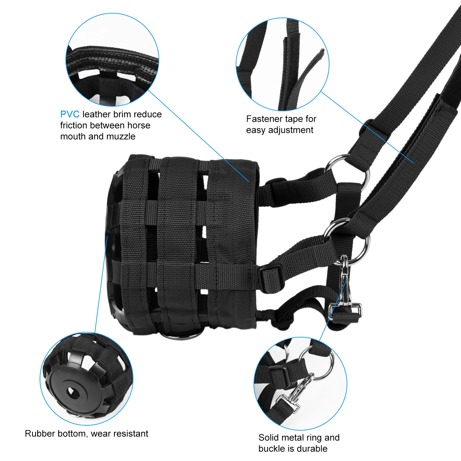 Полная регулировка и Легкая фиксация под конским подбородком с крепежной лентой, хорошо подходит для лошадей на диете или которые подвержены основателю и коликам.