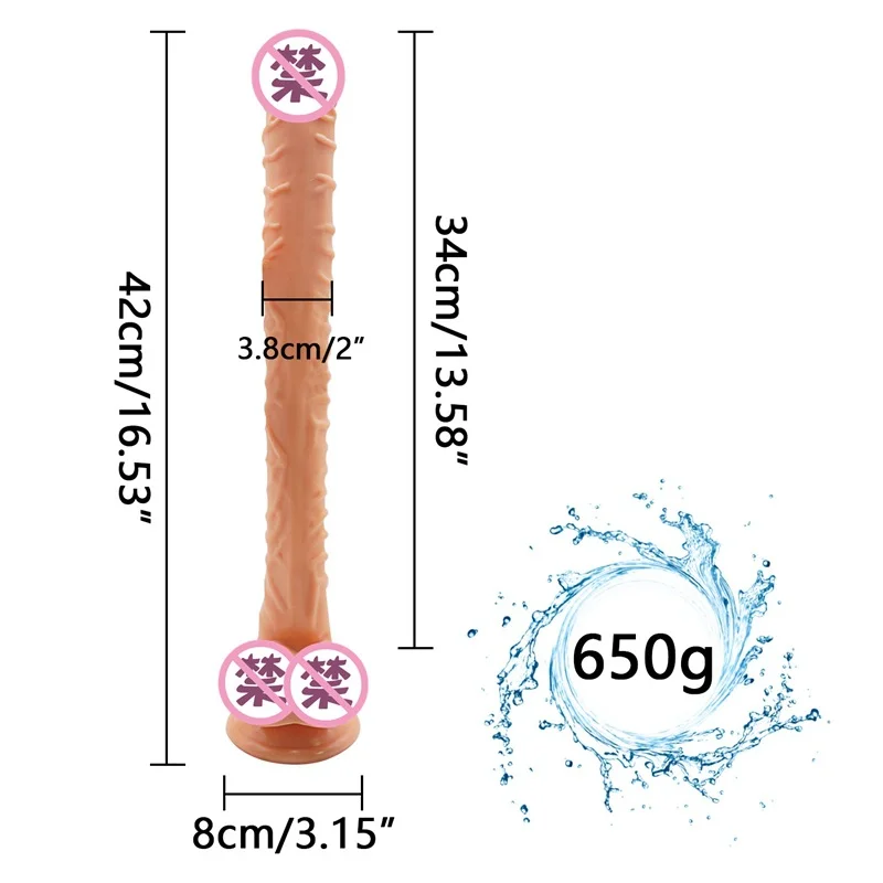● Общая длина: 42 см/16,53 дюйма ● Длина, которую можно вставить: 34 см/13,58 дюйма ● Диаметр: 3,8 см/2 в ● Голый вес: 650 г