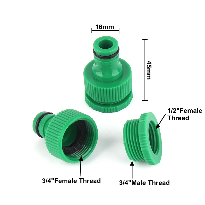 Название продукта: быстрые разъемы Размер: 1/2 "до 3/4" Женская нить Применение: орошение для сада, лужайки, поднятой кровати, овощей, плантаторов, цветочных горшков, садоводства.