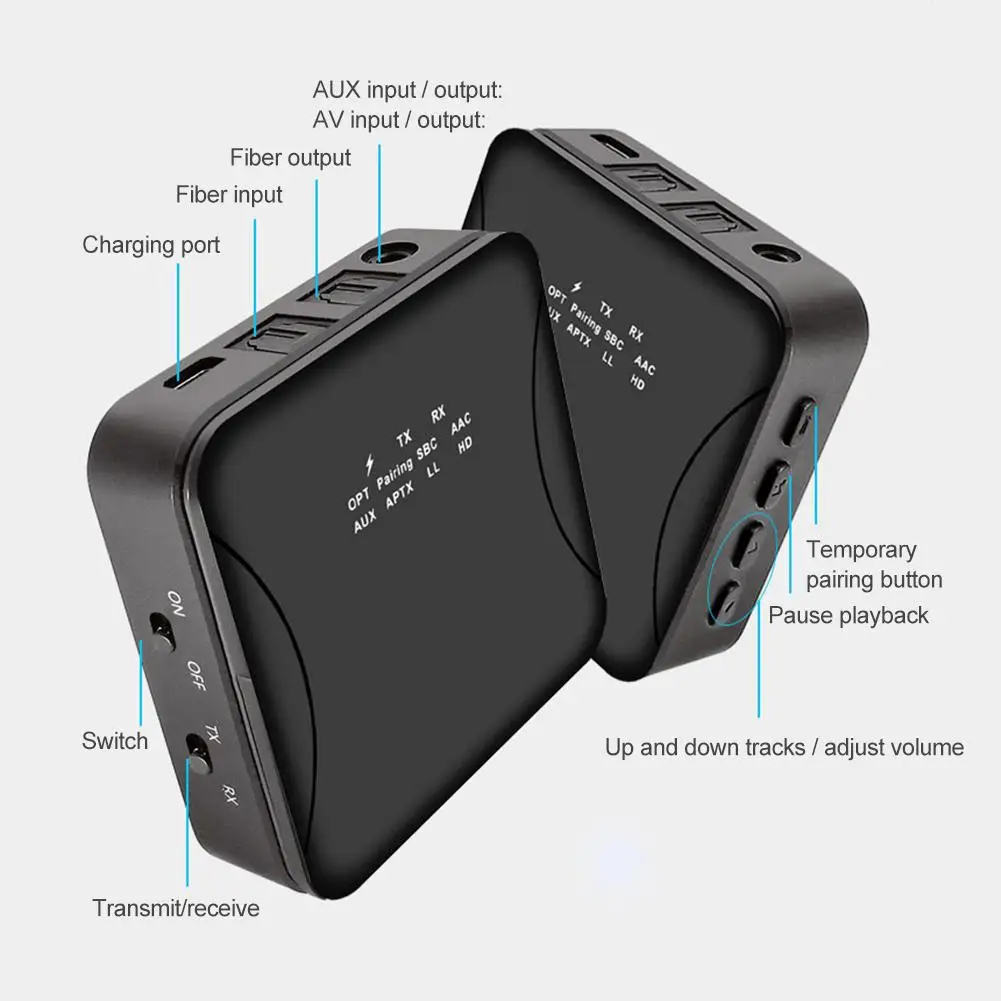 Особенности:1. это стерео приемник и передатчик 2-в-1 Bluetooth волоконно-оптический адаптер, который может быть подключен к Bluetooth с поддержкой динамик или гарнитура (в штат Техас) или на мобильный телефон или компьютер (в состоянии RX).2. Поддерживает функцию один-на-два (один XU21 может подключить два динамика или наушники одновременно, и слушать музыку одновременно).3. Поддерживает APT-X, APT-X HD. Поддерживает оптоволоконный вход и оптоволоконный выход.4. Простота в использовании, одноразовая работа для сопряжения, и функция памяти будет сопряжена автоматически.5. С литий-ионным полимерным аккумулятором емкостью 600 мАч время зарядки составляет около 3 часов, а время использования-15-22 часа. Параметры:Чип Bluetooth: CSR8675Поддержка Bluetooth: RX: A2DP AVRCP TX: A2DPДальность передачи:> 10 м (Открытая Зона)Батарея стандарт: 600MAВремя обслуживания: RX> 18 H TX> 22 HВремя зарядки около 3 чНапряжение зарядки: 5 В постоянного токаРежим подключения: SPDIF, 3,5 мм стерео аудио интерфейсКодек:TX: apt X HD, apt X с низкой задержкой, apt X, SBC,RX: apt X HD, apt X с низкой задержкой, apt X, SBC, ACC Посылка список:1 * оптический bluetooth-приемопередатчик1 * Инструкция1 * оптический кабель1 * USB зарядный провод1*3,5 мм аудио кабель1 * RCA аудио соединительная линия Примечание:1. Может быть текущий шум интерфейса во время зарядки продукта с низкой мощностью или чехол, который вы используете, это плохой поставщик зарядки.2. Срок службы батареи зависит от того, используется ли она часто.3. Пожалуйста, старайтесь не хранить продукт в низкой мощности, что может привести к тому, что батарея защищена автоматически, и тогда батарея не может быть использована снова.![]()