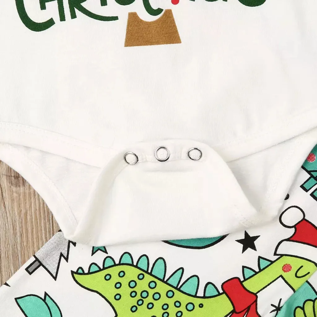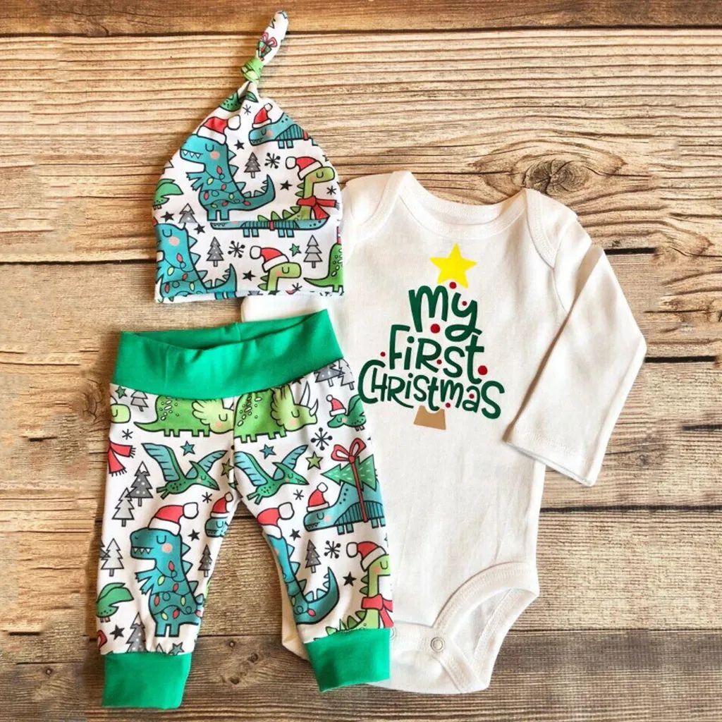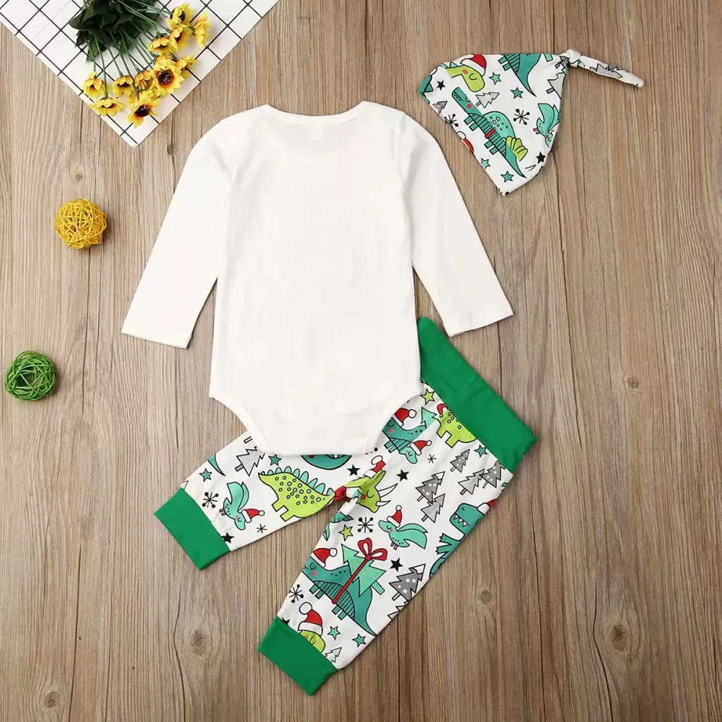 Первое Рождество для маленьких мальчиков, боди для девочек и леггинсы с принтом "Динозавры" штаны, 3 предмета в комплекте, комплект одежды