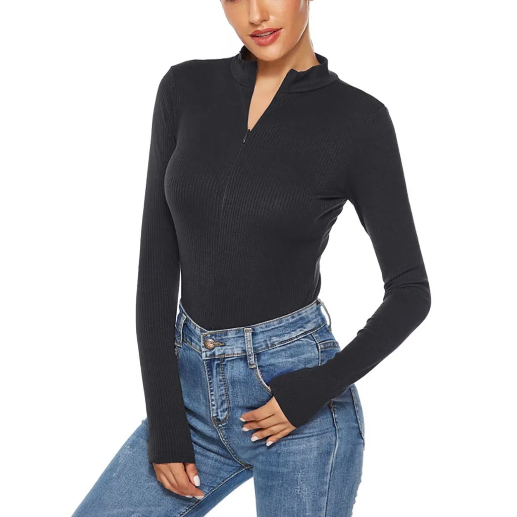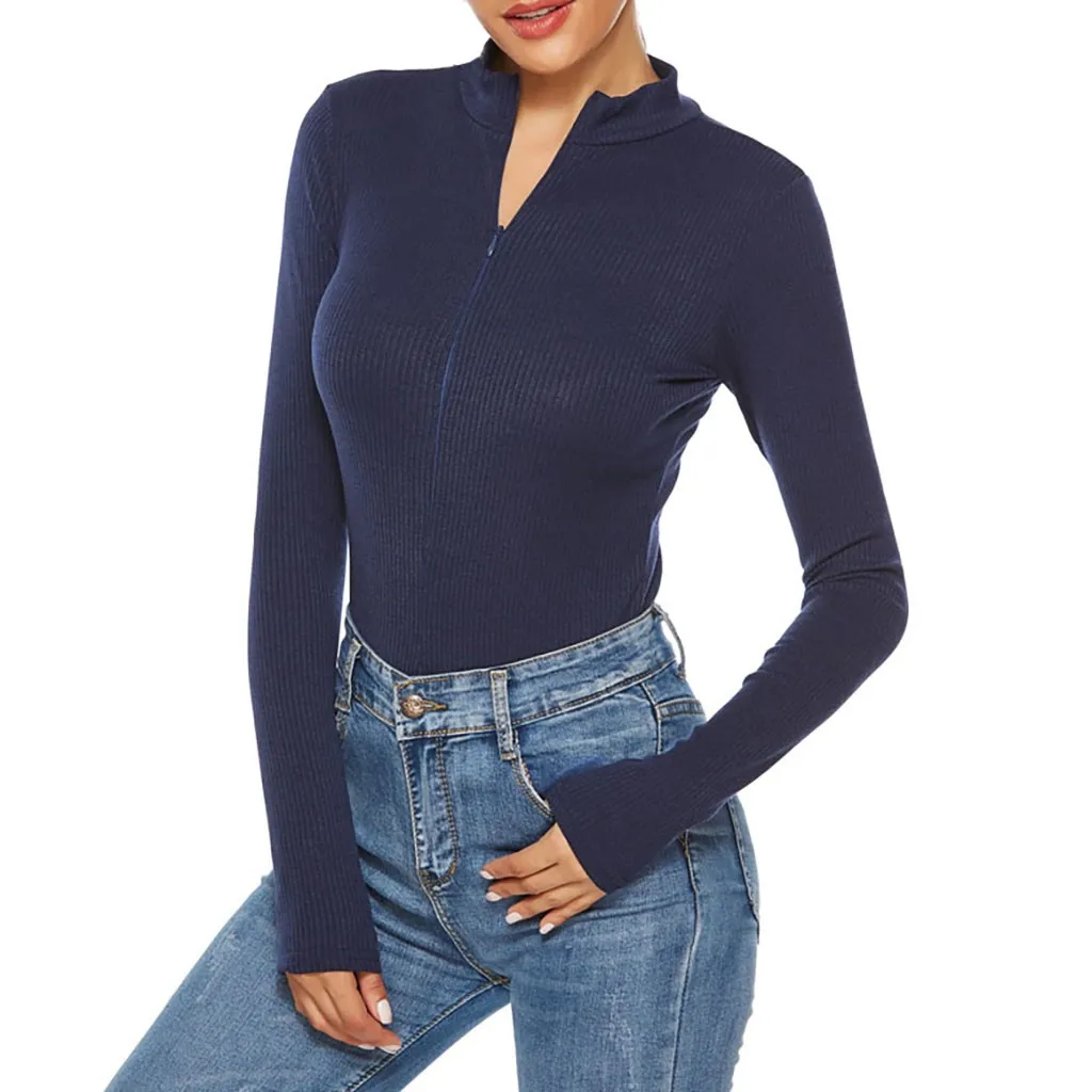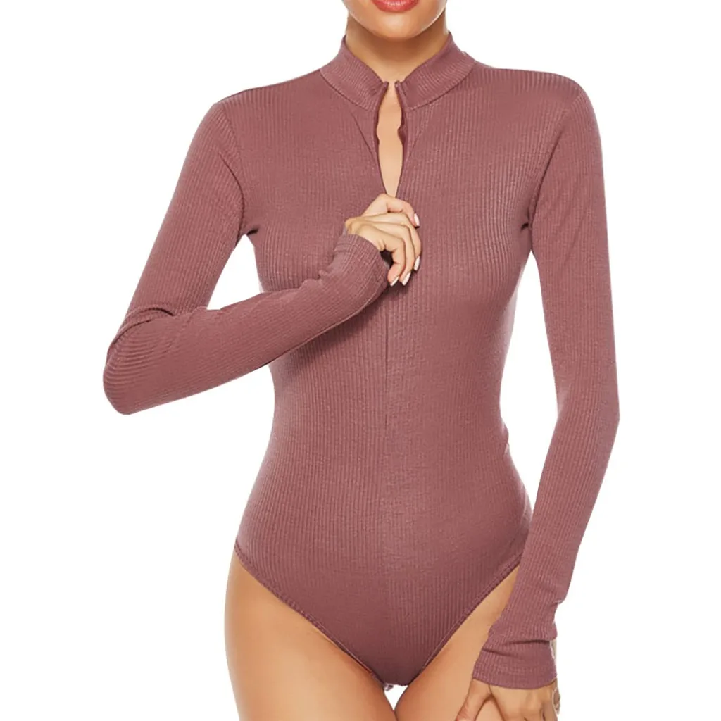 Женский Трикотажный боди с длинным рукавом, облегающий однотонный комбинезон на молнии, новинка 2019