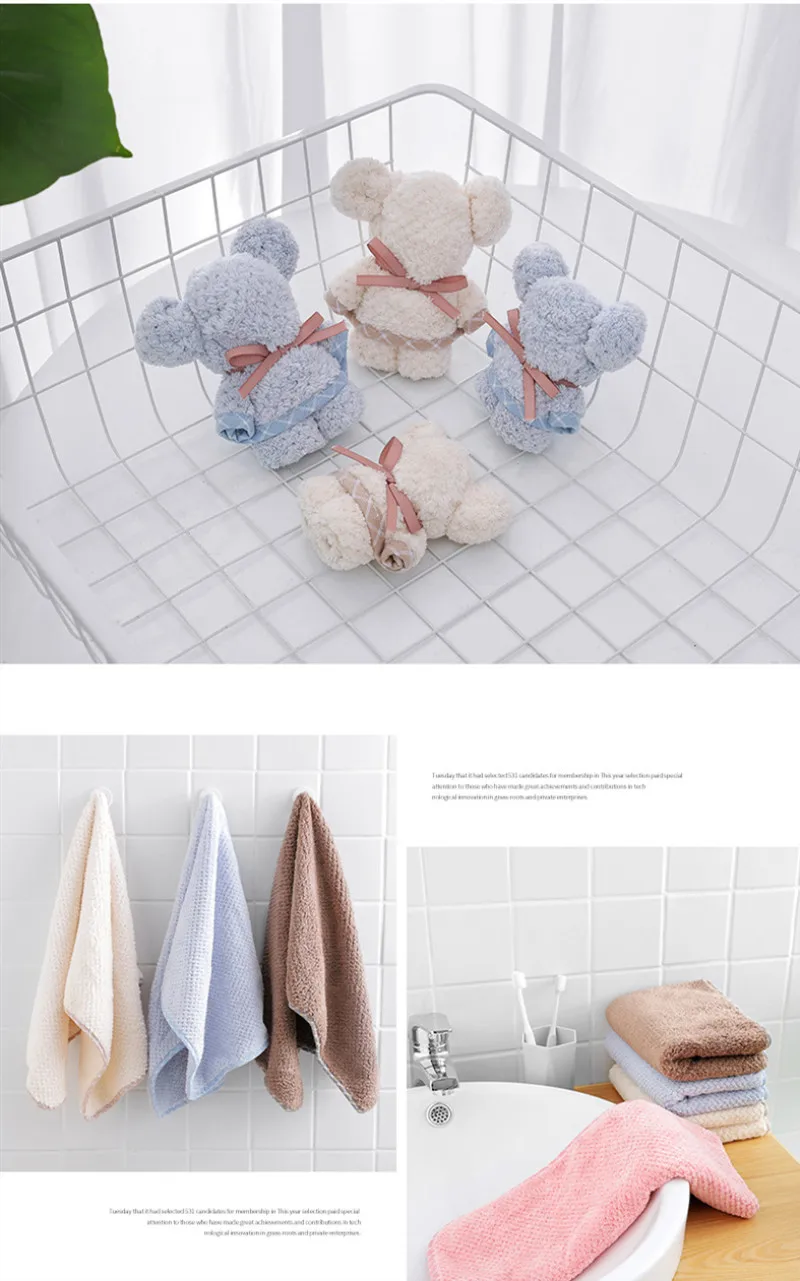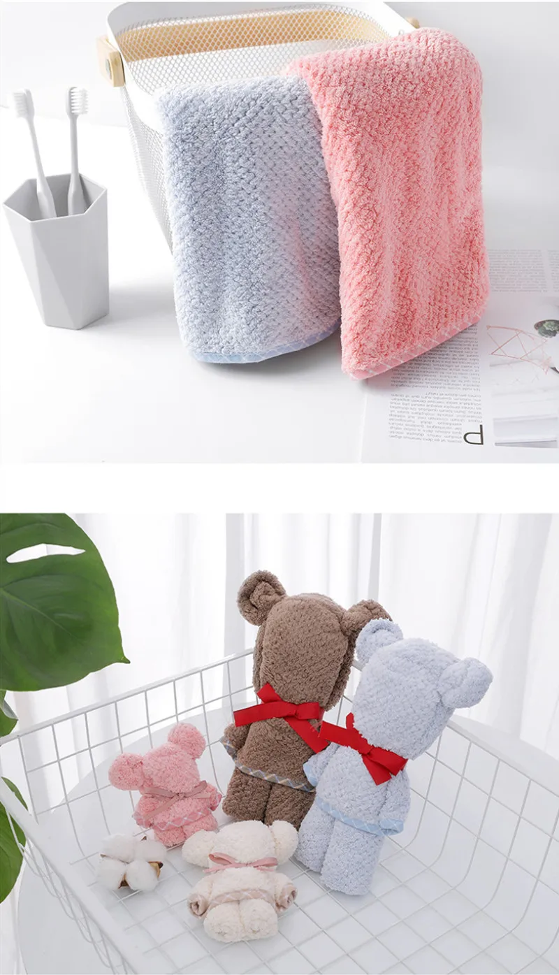Милый медведь складное полотенце для ванной комнаты быстросохнущее мягкое Коралловое флисовое Впитывающее сухое полотенце для волос салонное полотенце для свадебного подарка