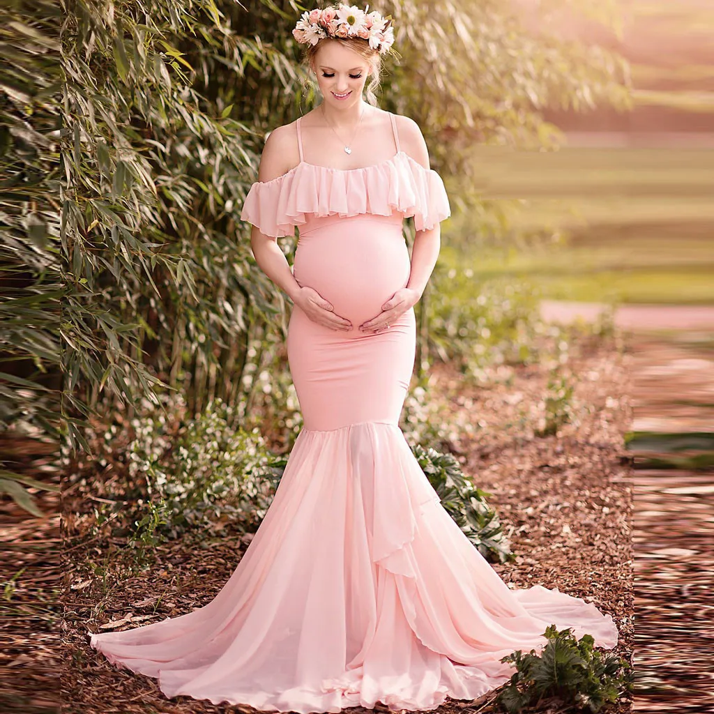2. Модный дизайн с открытыми плечами делает беременных женщин более привлекательными