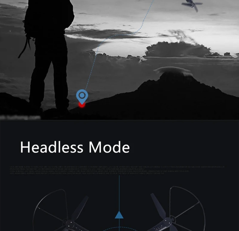 6. Безголовый режим: независимо от угла наклона дрона под любым углом, он основан на направлении дистанционного управления, и управление более удобно.