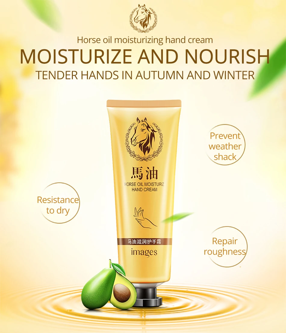 Увлажняющий крем для рук с лошадиным маслом. Восстанавливает шероховатость. Сухость. Тонкие линии. Тьма. Фруктовый жир дерева авокадо. Гиалуроновая кислота. Увлажнение. Питательное. Питание.