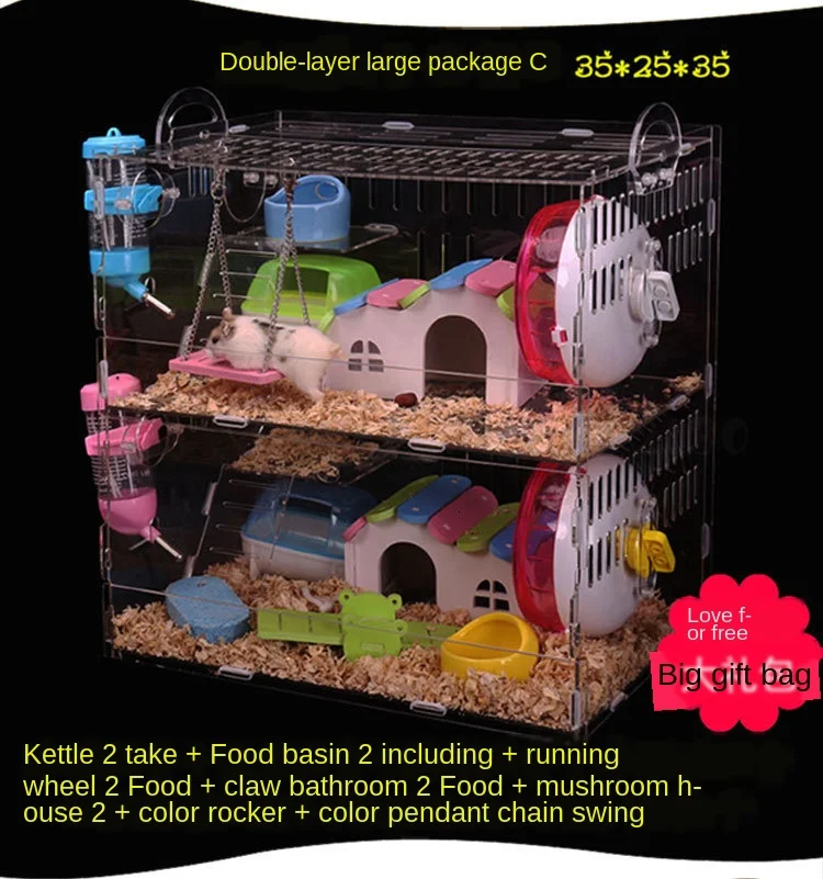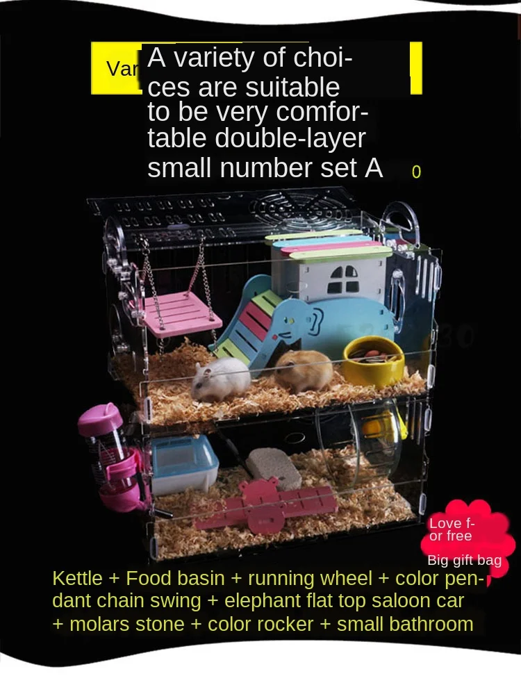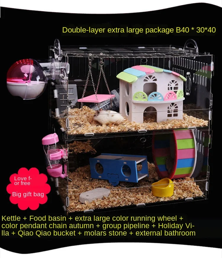Клетка для хомяков, двойная прозрачная вилла, принадлежности для гнезда