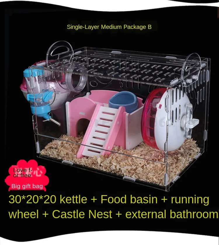 Клетка для хомяка прозрачная акриловая большая вилла маленькая двухслойная Одиночная изолирующая крыса