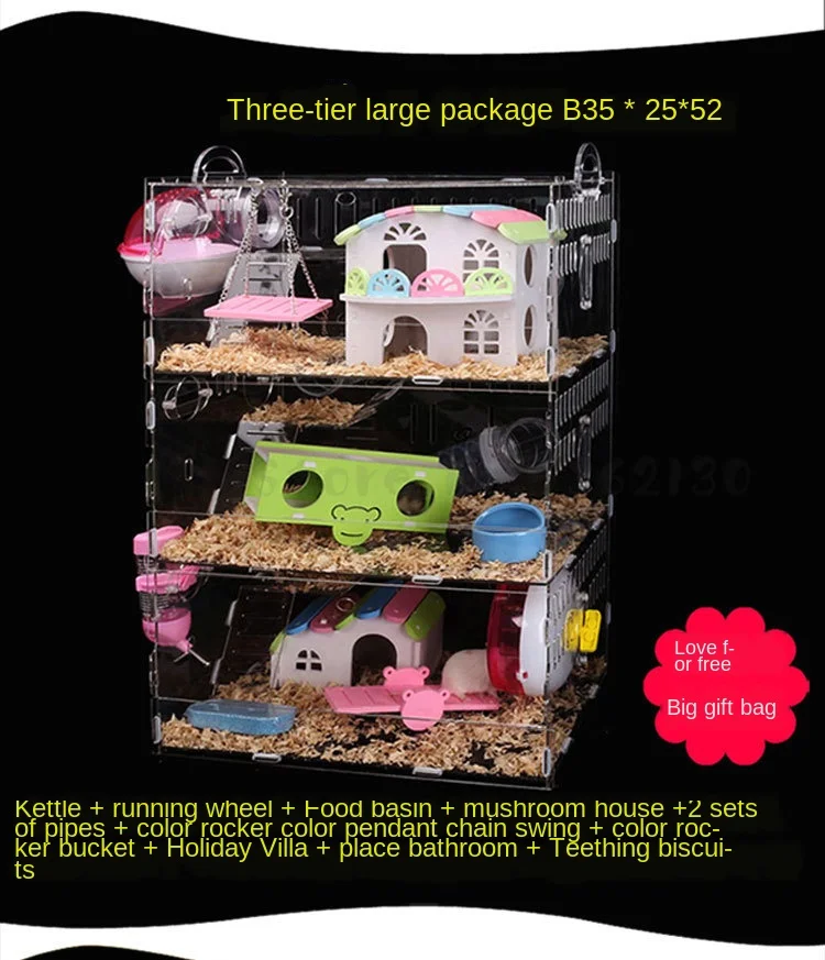 Клетка для хомяков, очень большая вилла для малышей, золотой Шелковый медведь, однослойная двойная Прозрачная основа, принадлежности, игрушки