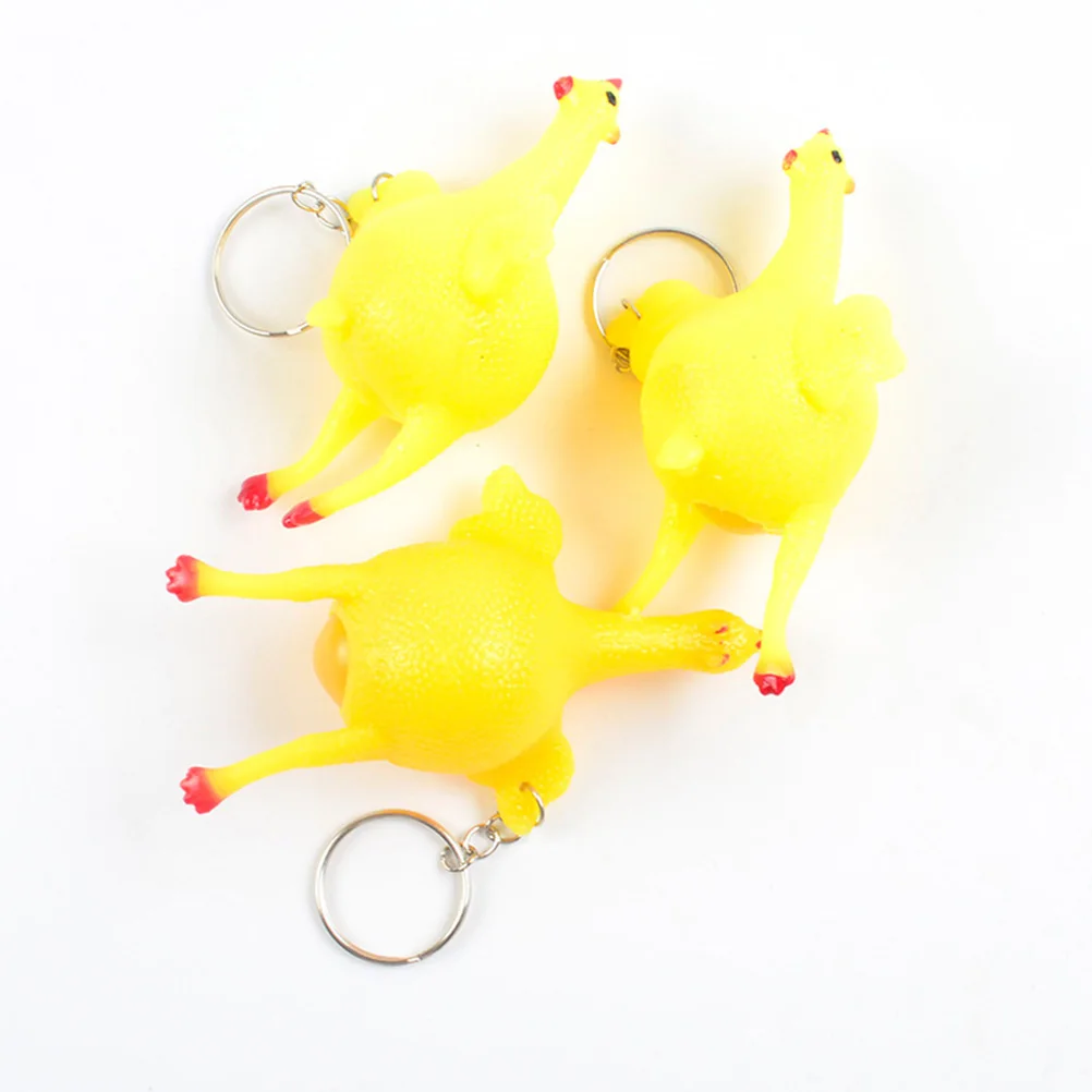 Курица изготовлена из мягкой резины и долговечна в использовании.