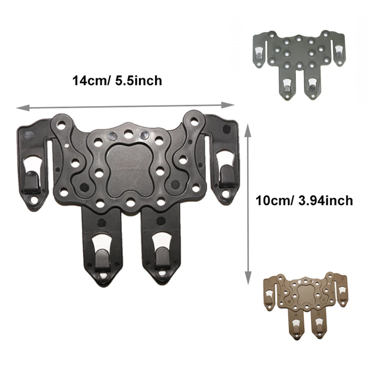 Можно закрепить на любой платформе s.t.r.i.k.e или MOLLE, включая жилеты, ремни, платформы капель, внутренние панели и пакеты.Ambidextrous для левых или правых рук.Изготовлен из промышленного полимера высокой плотности.Тип 2:360 градусов адаптер вращения платформы
