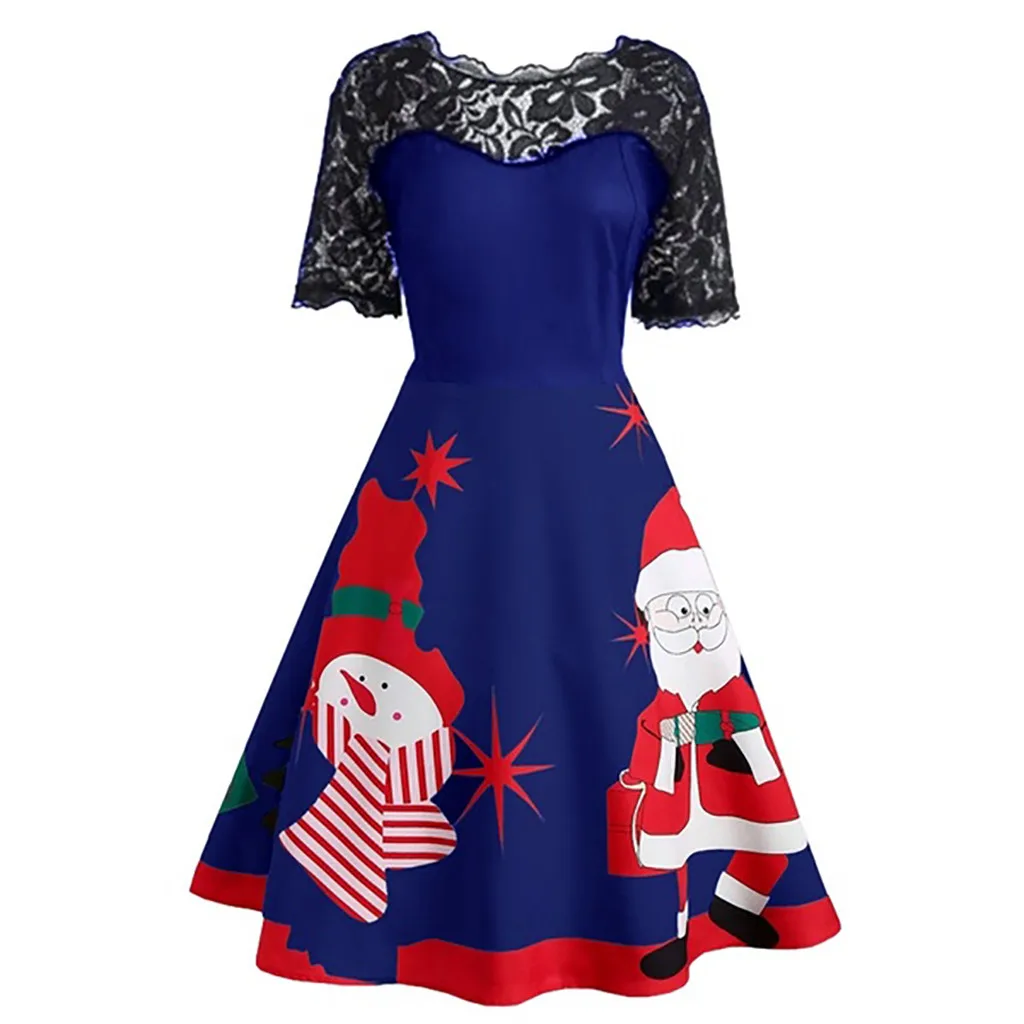 Рождественское платье, винтажное женское платье, повседневное кружевное Вышитое Платье с принтом Санта-Клауса, элегантное вечернее платье, robe pour noel vestidos robe # D