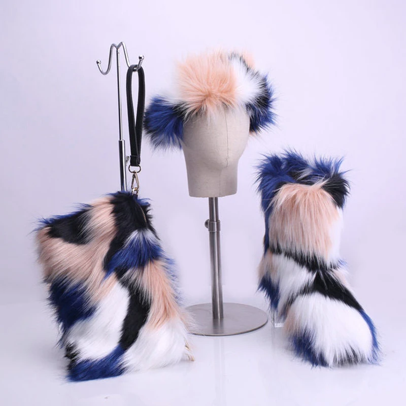 Зимние женские меховые сапоги, пушистые меховые зимние сапоги для женщин, ботильоны с искусственным мехом, пушистая плюшевая обувь плоская каблук, женская сумка, повязка на голову Роскошные ботинки из меха лисы: милые пушистые ботинки из искусственного меха Теплые зимние сапоги: теплые зимние сапоги Очаровательные женские ботильоны; Милые женские ботильоны Роскошная меховая сумка/ботинки/повязка на голову: Меховая повязка на голову Подходит для: Уличная Повседневная обувь; Теплые ботинки; Домашняя обувь Один комплект = сапоги + Сумочка + повязка на голову