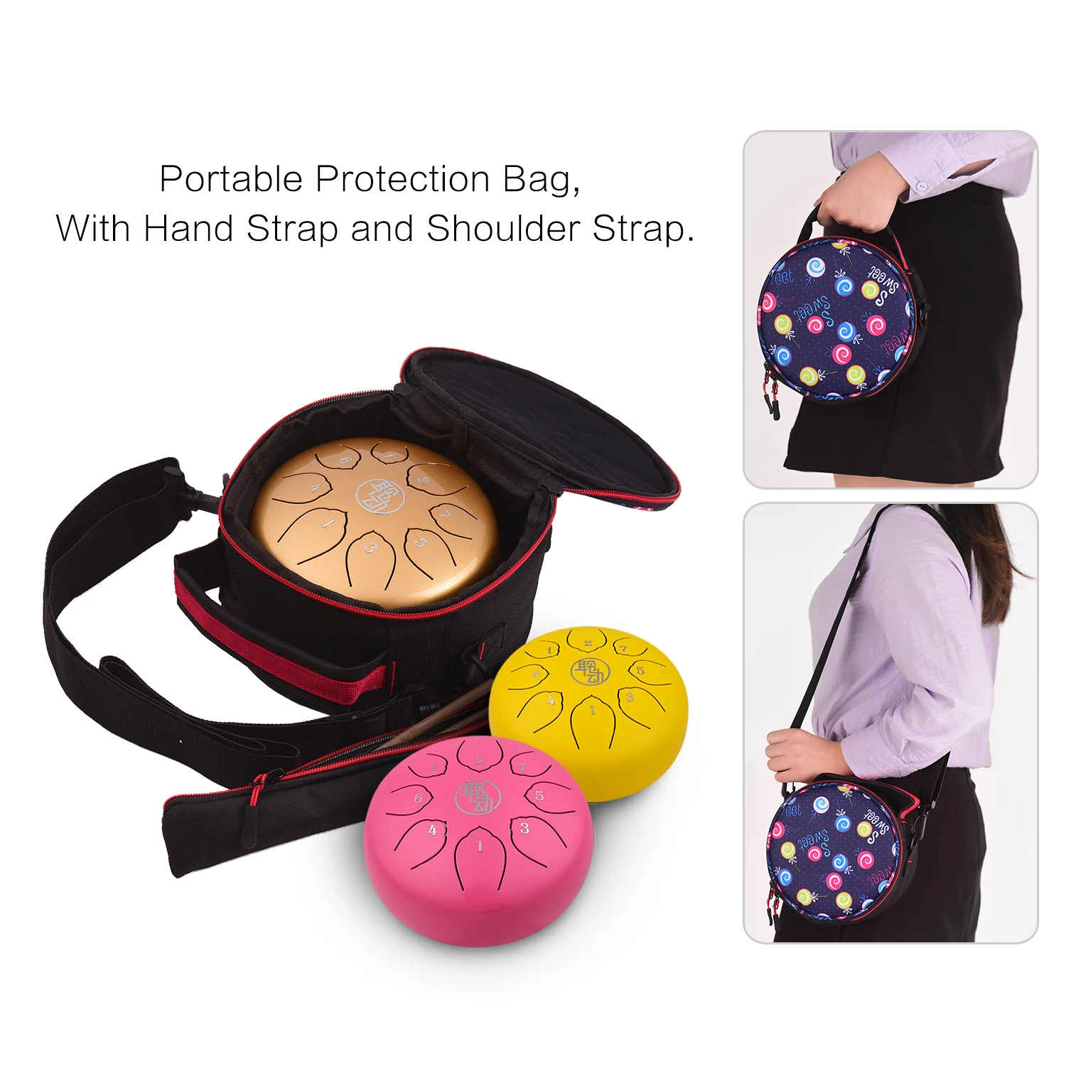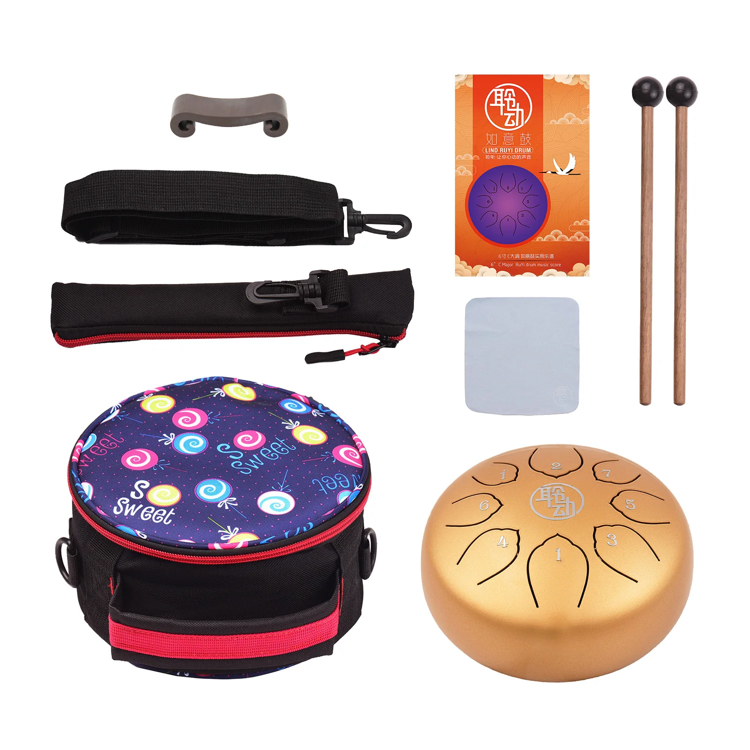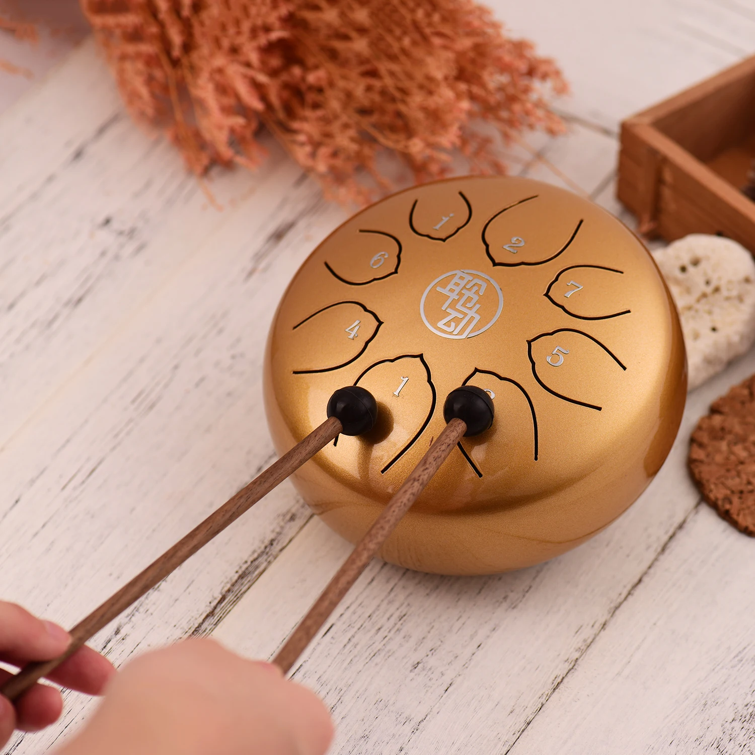 Стальной барабан для языка, также называемый барабаном лотоса, означает быть счастливым, чтобы забыть печаль. Во время игры чистый, Эфирный, похожий на будду звук будет звучать в воздухе.