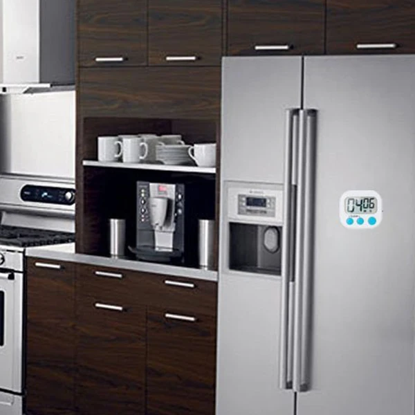 Функция: 99 минут 59 секунд подсчет вверх/вниз цифровой магнитный кухонный таймер с установкой памяти. Нажмите и удерживайте кнопку в течение 3 секунд, тогда время будет быстро вперед.