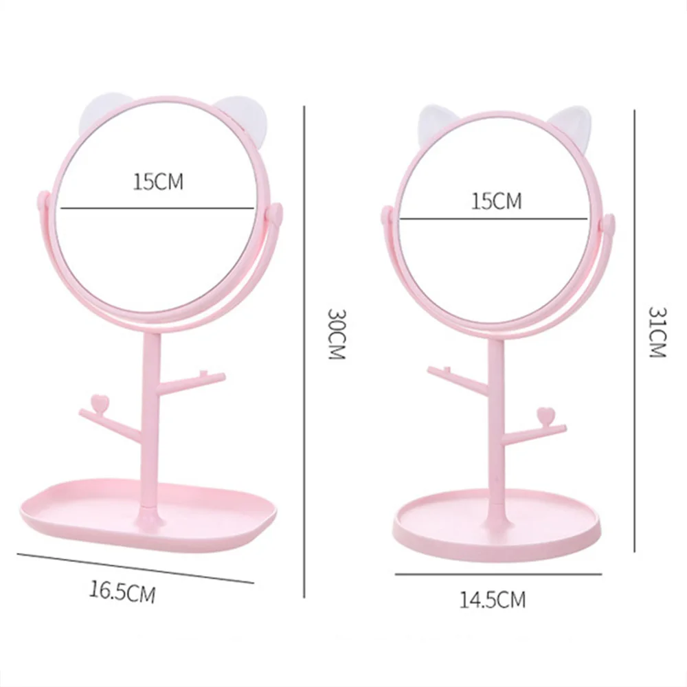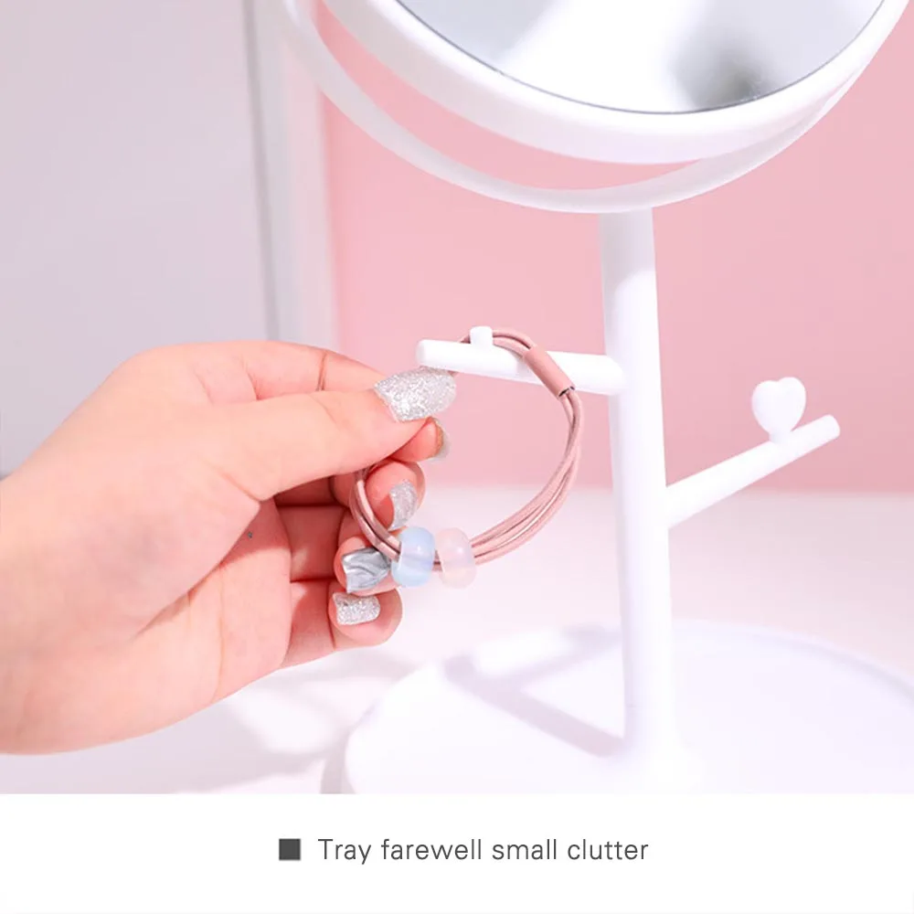 Симпатичное зеркало для макияжа настольное туалетное зеркало вращающееся с поддоном для макияжа маленькое зеркало