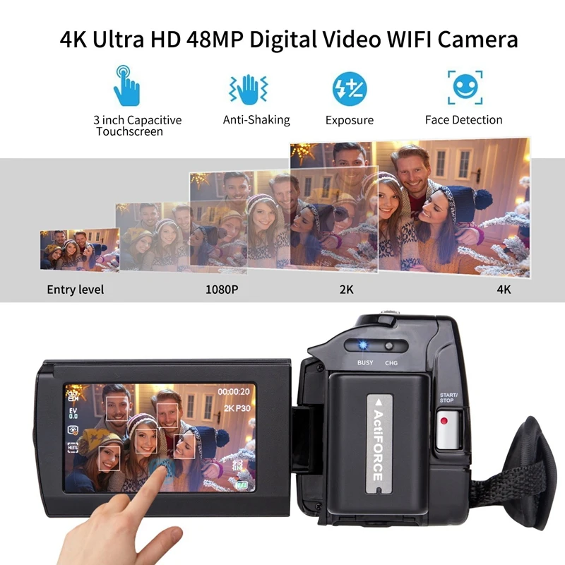 Совершенно новая 4 K (2880*2160) 24fps (интерполяция) Цифровая видеокамера, качество видео гораздо лучше, чем 1080P. съемка замечательных фотографий в 48MP (9212*5184) (интерполяция) супер высокой четкости.