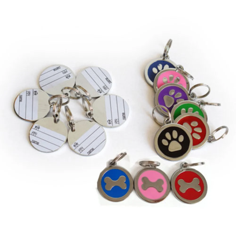 Стильная и прочная металлическая идентификационная бирка для домашних животных имеет узор в виде лап или костей.