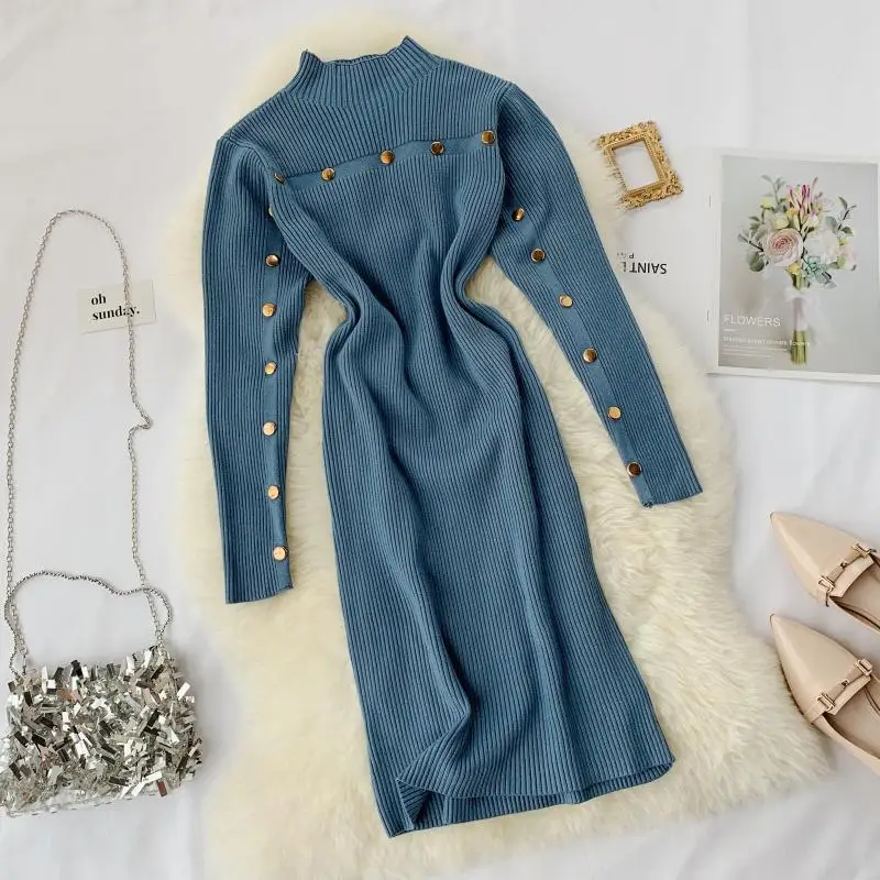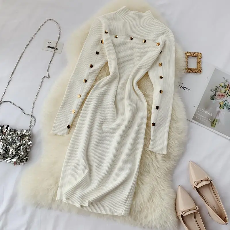 Теплое женское платье-свитер, зимняя винтажная одежда, облегающее платье белого цвета на осень с длинным рукавом, Элегантное трикотажное платье миди, офисное Повседневное платье Vestidos