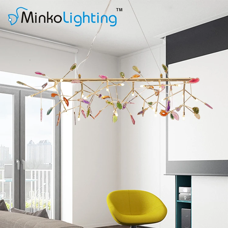 StyleChandelier Pendant LightItem NO.MNK-N532Materialiron + agateColorGold or customSize(mm)D1150mmLight source24 pcs G4 ledVoltage/Watt110-240VWarranty2 yearsMOQ2pcsproduction experienceOver 8 yearsApplication rangeHotel, Restaurant, Office, Meeting Room, Bedroom, Sitting Room, Shopping Mall, Cinema, Museum, etc.