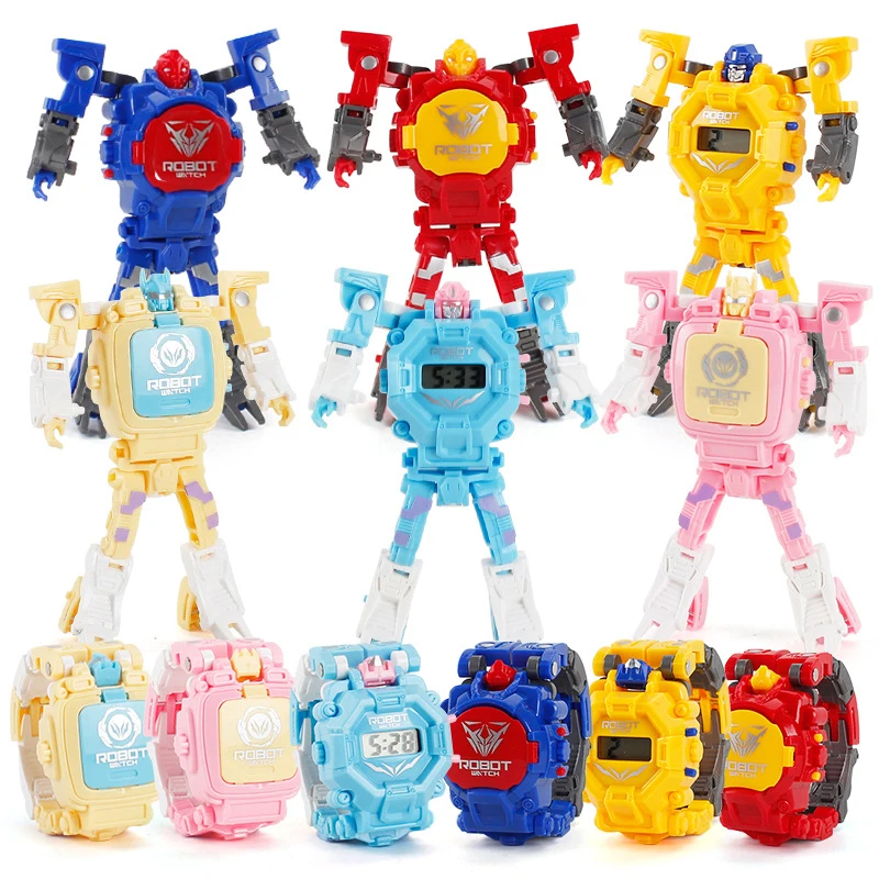 Новые технологии дети Робот трансформации наручные часы игрушка робот электронные часы дети спорт мультфильм часы Дети Рождественские подарки