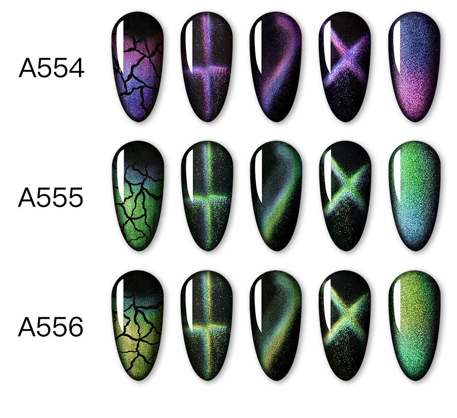 Item Specifications: Brand: ROSALIND Name: 9D Galaxy Cat Eye Gel Volume: 5 ml Color: 6 Colors Cured: UV/LED Lamp Note: Need Magnet Stick To Get The Effect We are confident that our 9D cat eye nail gel is of the best quality on Aliexpress. -The Quality is our 1st priority. -Light, almost no smell, we apply only organic texture to protect your health. -The effect will keep 15 to 20 days. -Hotting colors optional, and color changes in different temperature. Step by Step: 1.Prepare your nails with base coat, and cure it under UV / LED lamp. 2.Apply the 9D cat eye gel. (DO NOT Cure!) 3.Use the magnet stick close to nail. The closer distance, the more obvious effect. But keep away from the gel. The effect is according to the line of the magnet stick and the direction you put it. 4.Cure it under UV/LED lamp. 5.Apply the top coat, and cure it under UV / LED lamp. To Remove: -1. Soak off the nails into acrylic remover for about 5 minutes, -2. Rip down the whole piece of nail enamel gently on each nail. Notice: 1.The net volume is 5ml. Since the capacity of the bottle is more than 5ml, the temperature cat eye nail gel will not fully filled with the bottle! 2.About the cat eye gel, please apply the gel the nail, use the magnet stick, then you can see the effect same as description.