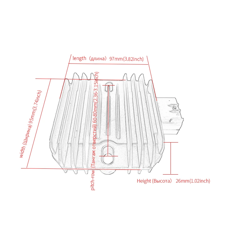 -Регулятор мотоцикла -Входное напряжение: 12 В постоянного тока -Цвет: как на картинке -Размер: 97*95*26/мм (3,82*3,74*1,02/дюйм) -Шаг: 60-80/мм (2,36-3,15/дюйм) Предотвращает перезарядку аккумулятора и улучшает Возможность зарядки С ребрами радиатора для лучшего охлаждения Aftermarket регулятор напряжения мотоцикла выпрямитель Сверхмощный металлическая конструкция Помогает рассеивать избыточное напряжение, предотвращая перезарядку аккумулятора Эффективно улучшить зарядку (кроме устройств Большой дизайн теплоотвода плавники для максимального устранения тепла