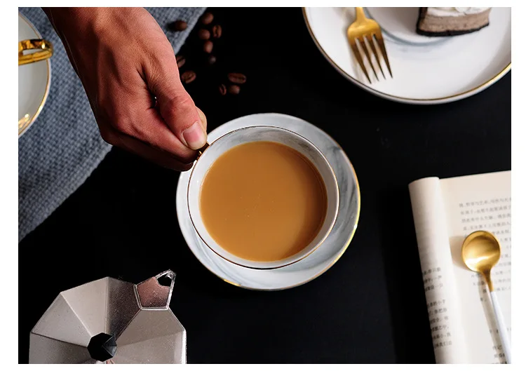 300 мл, ручная роспись, Высококачественная кофейная чашка, блюдце, набор, европейский стиль, мрамор, Пномпень, керамическая чашка для послеобеденного чая, бесплатная доставка