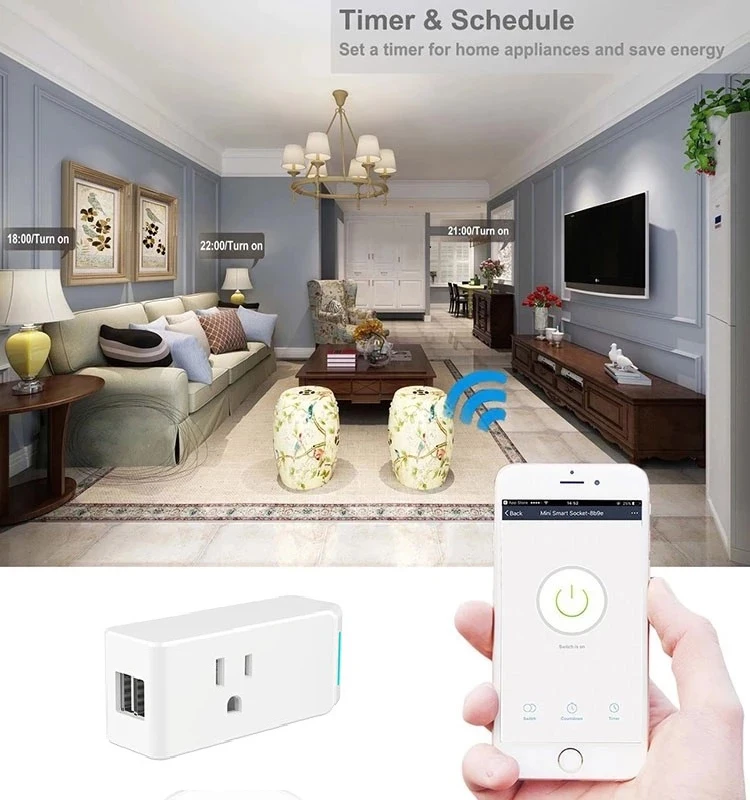 Приложение: Tuya /Smart Life Питание: AC100 ~ 240V 50/60Hz Максимальная нагрузка: 10A 2200 Вт 2 * Выход USB: 5 В постоянного тока 2.4A Стандарт WiFi: 2,4G, 802,11 b/g/n Материалы: огнестойкий ABS V0 + PC Тип шифрования: WEP/TKIP/AES Механизм безопасности: WAP/WAP2 Размеры: 97x46x57mm Вес: 90 г