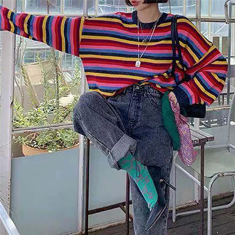 Категория одежды: женский свитер Ткань (материал): шерстяная Особенности: длинные рукава, круглый вырез, свободный, разноцветный, трикотаж, PS: подходит для различных цветов кожи женщин радужного цвета, чтобы показать личное очарование.