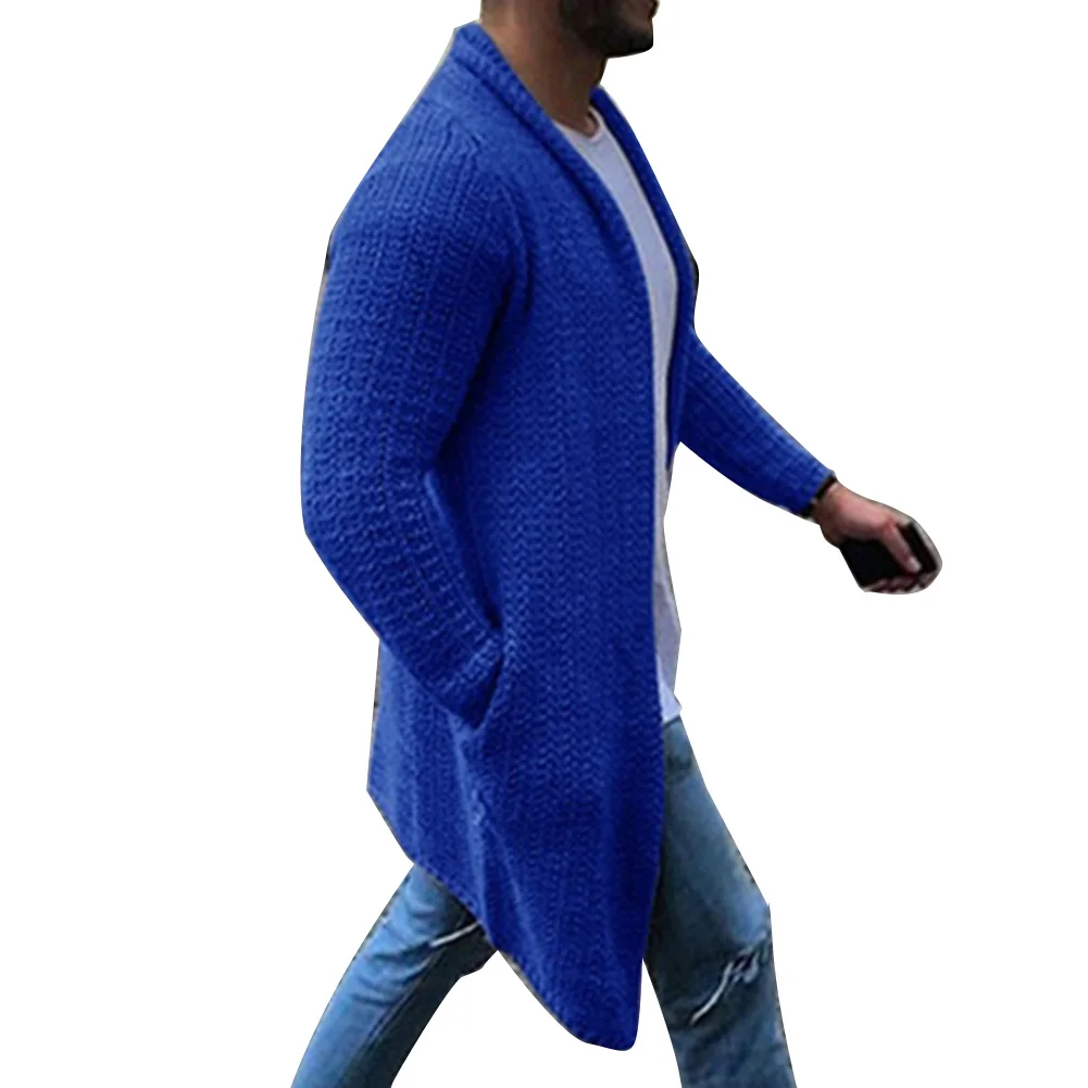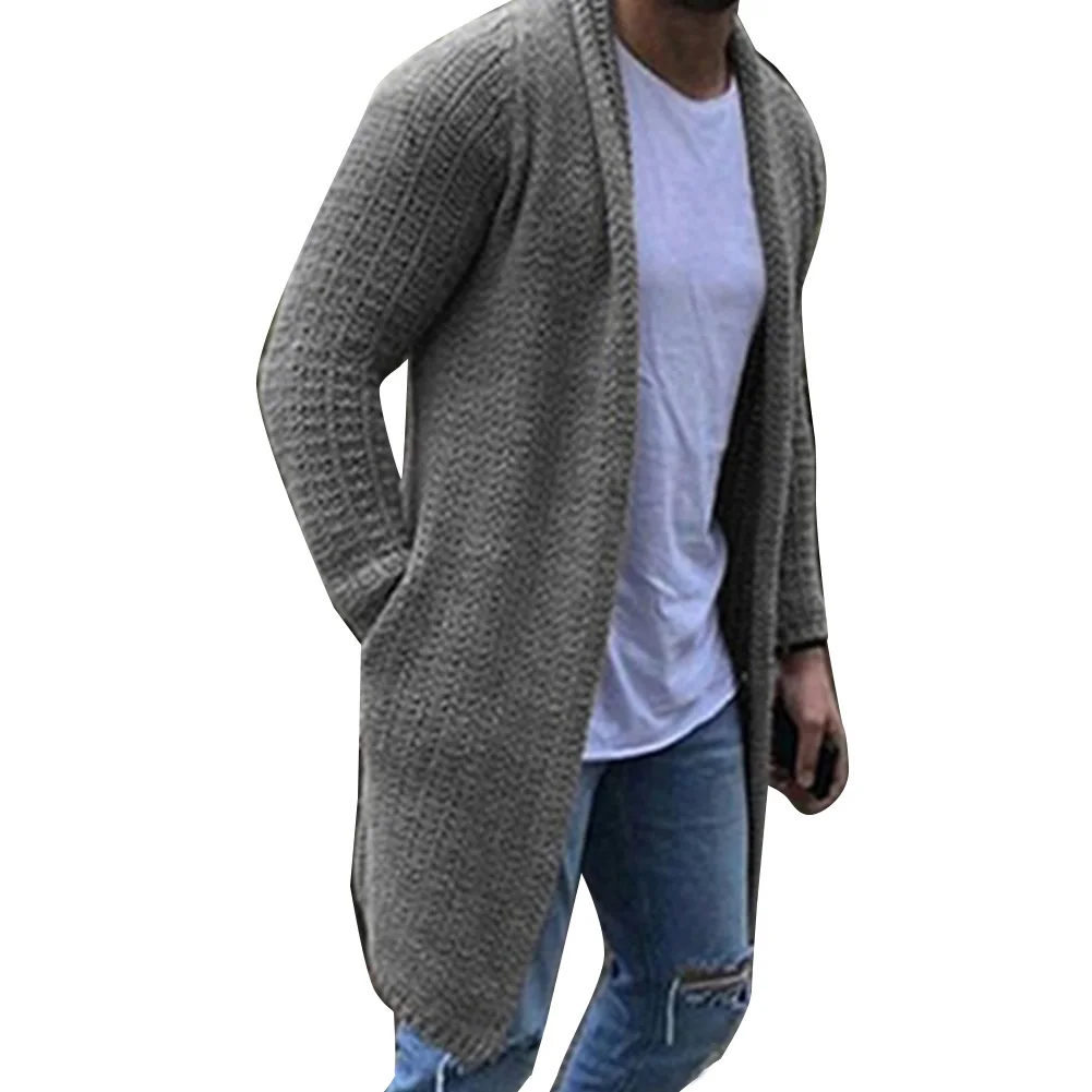 Осенне-зимний мужской длинный свитер, Однотонный свитер с капюшоном и длинным рукавом, верхняя одежда, Повседневный свитер, кардиган