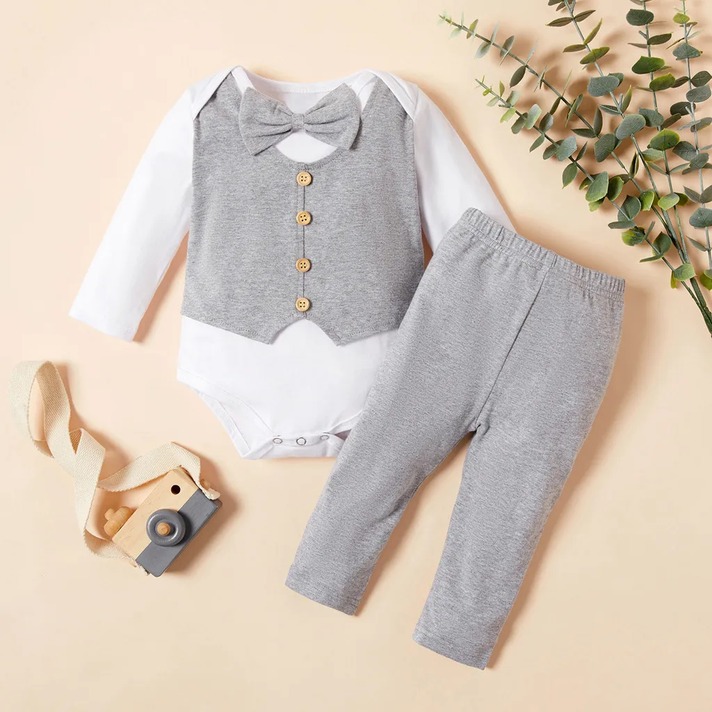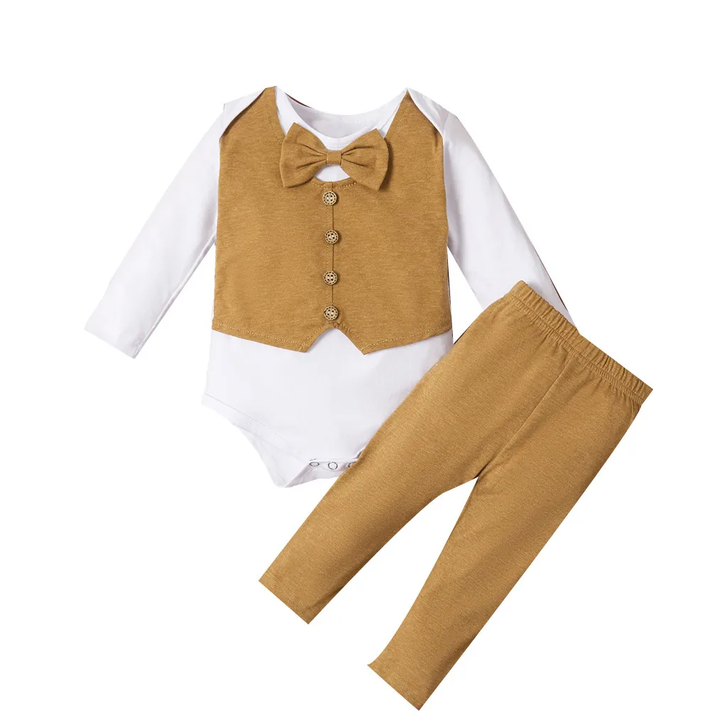 Одежда arloneet для маленьких мальчиков и девочек, джентльменский комбинезон с длинными рукавами и галстуком-бабочкой, рубашка + штаны, Детский костюм джентльмена из 2 предметов