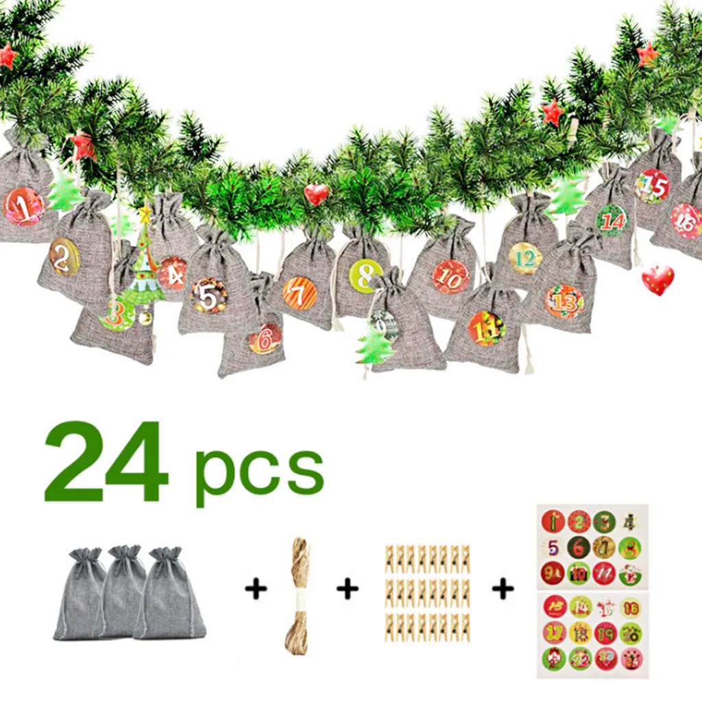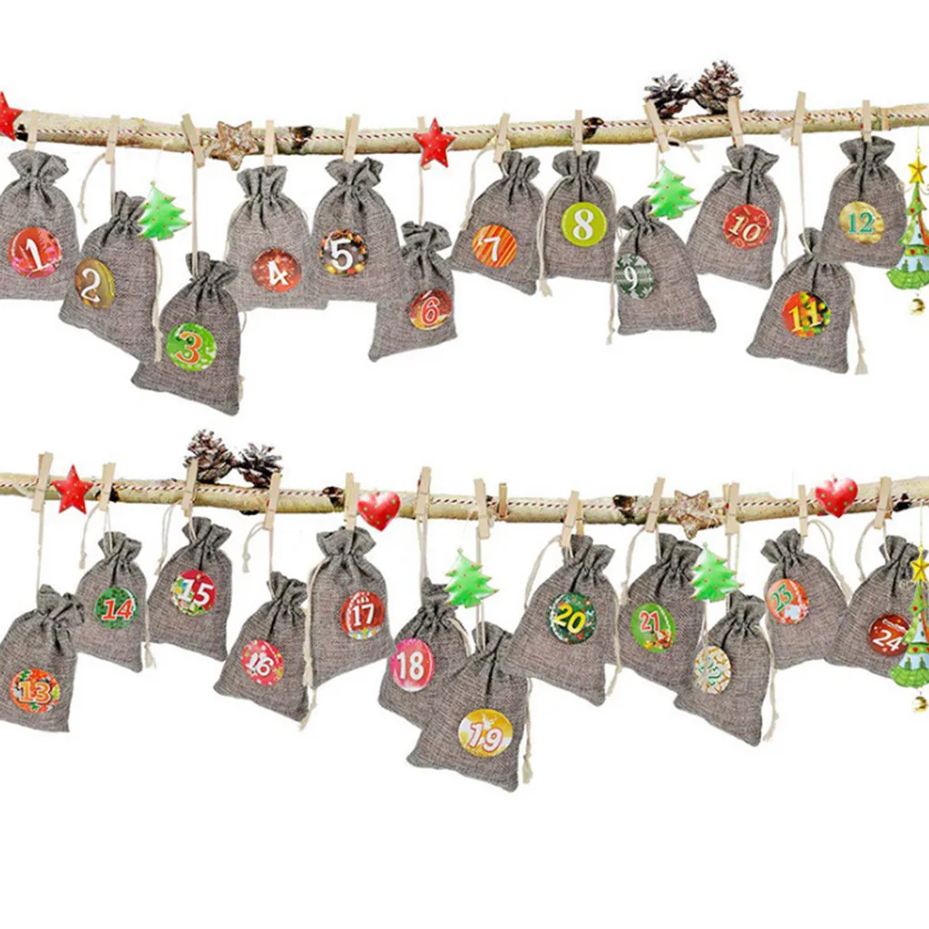 Сумка для конфет с рождественским рисунком 1-24 Advent Bundle календарь обратный отсчет джутовый мешок конфетный мешочек для хранения DIY Рождественский подарок календарь сумка