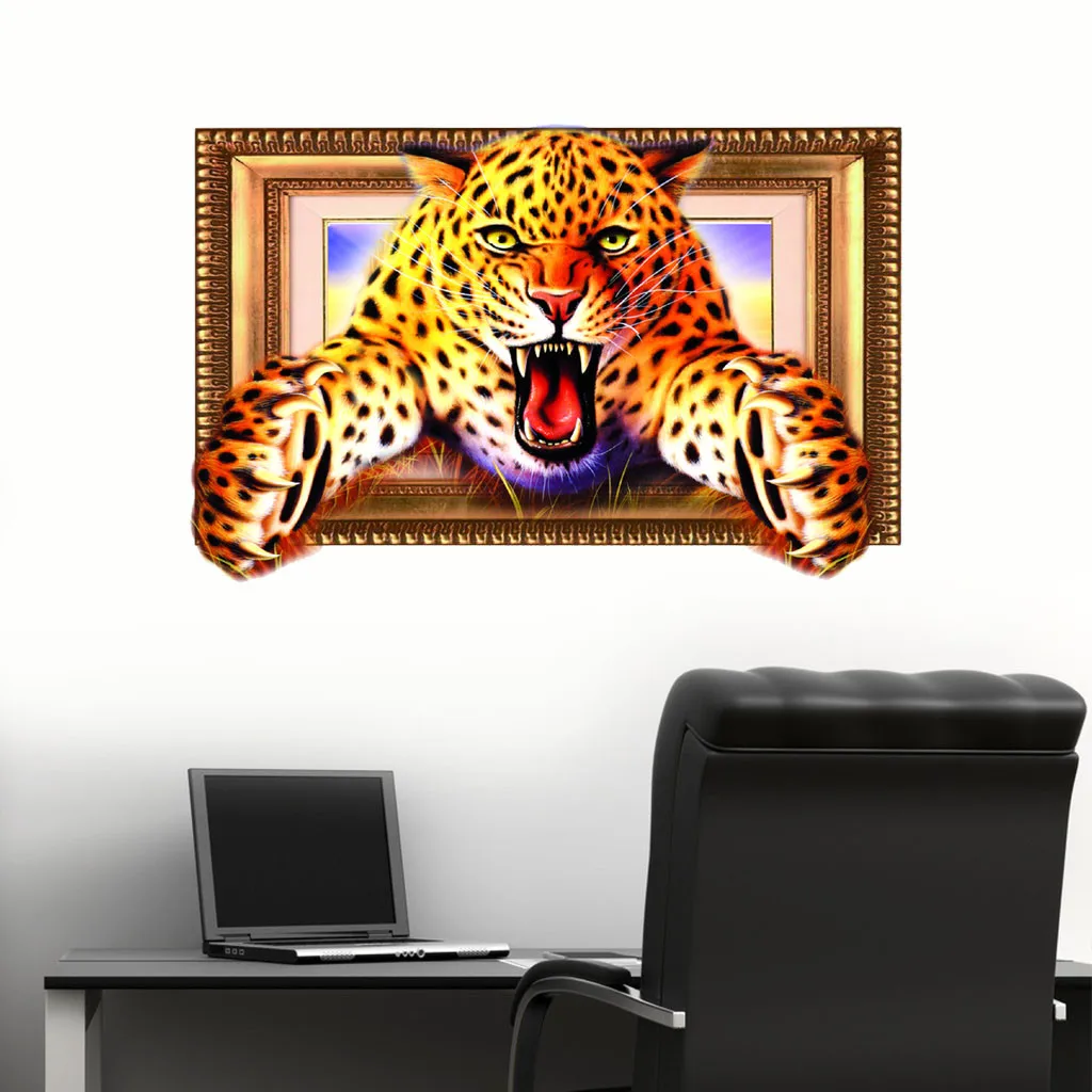 3D животные леопард ПВХ стикер стены стикеры обои гостиной украшения