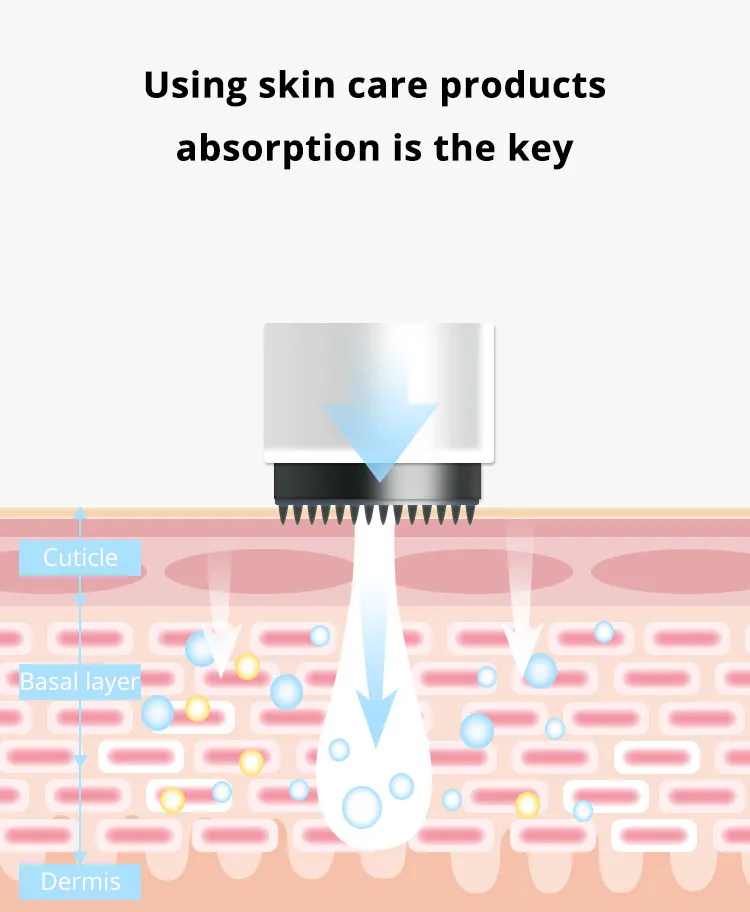 1. Не разрушает целостность структуры кожи 2. Постепенно удаляет глубокие токсины и отходы из кожи 3. Установите большое количество микро-труб для транспортировки основных косметических продуктов 4. Стимулирует самозаживляющие способности кожи, способствует метаболизму кожи и поддерживает эластичность кожи 5. Используйте естественную силу заживления ран, чтобы вызвать собственное питание кожи и рост коллагена 6. Простая эксплуатация, безопасная и надежная и замечательная эффективность