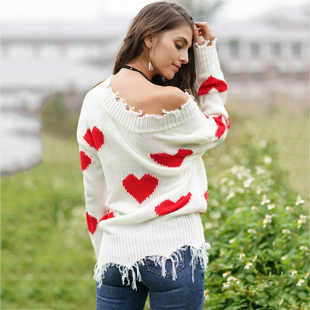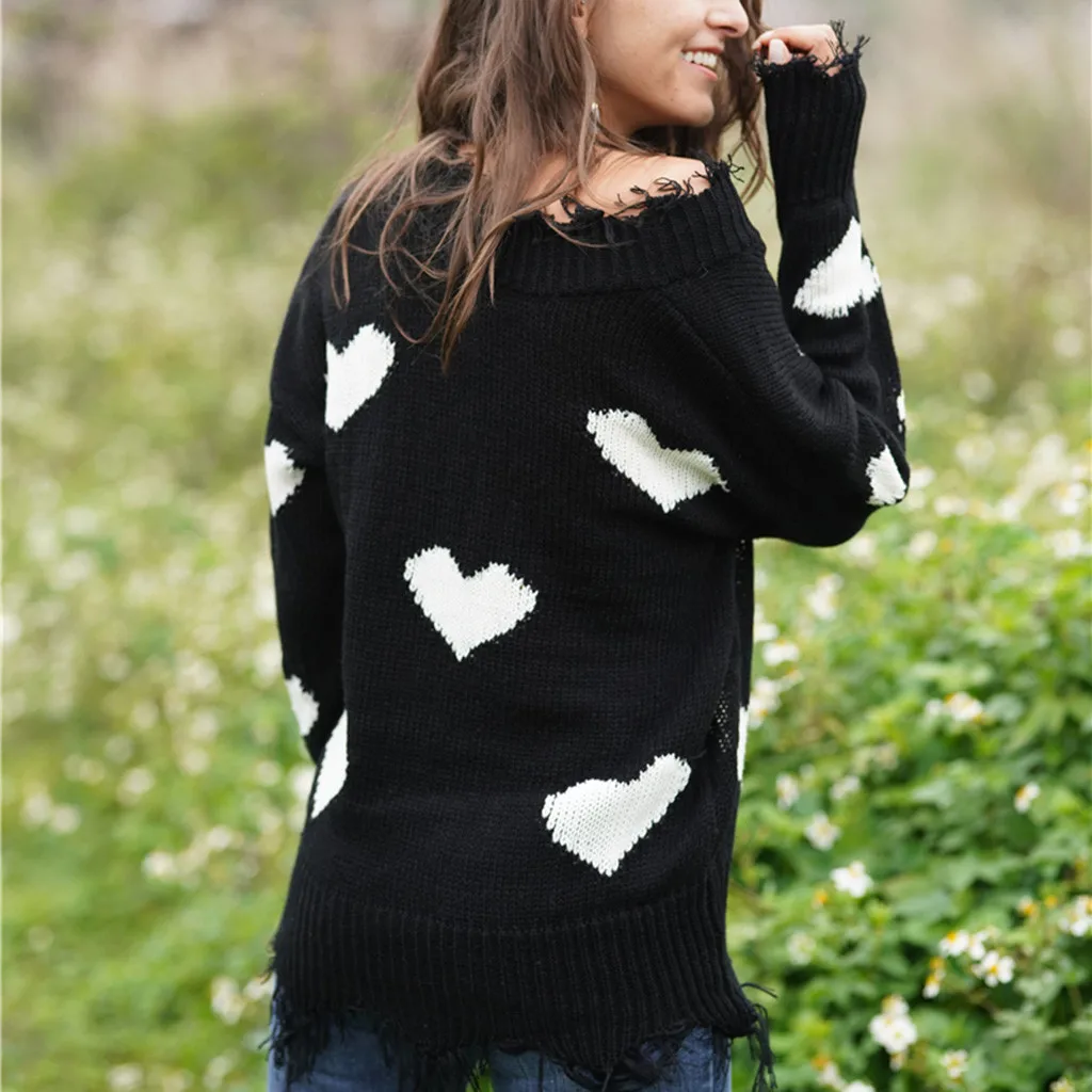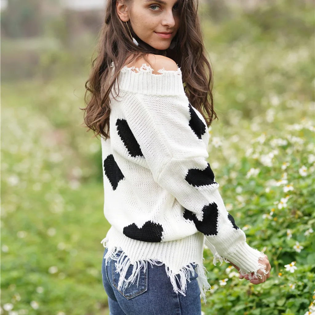 Женский свитер с открытыми плечами, повседневный вязаный Свободный пуловер с длинными рукавами и v-образным вырезом