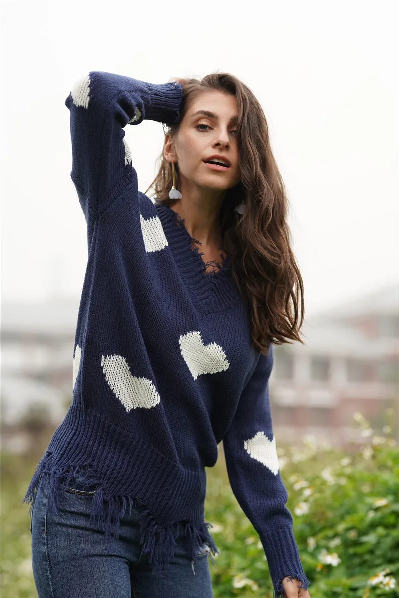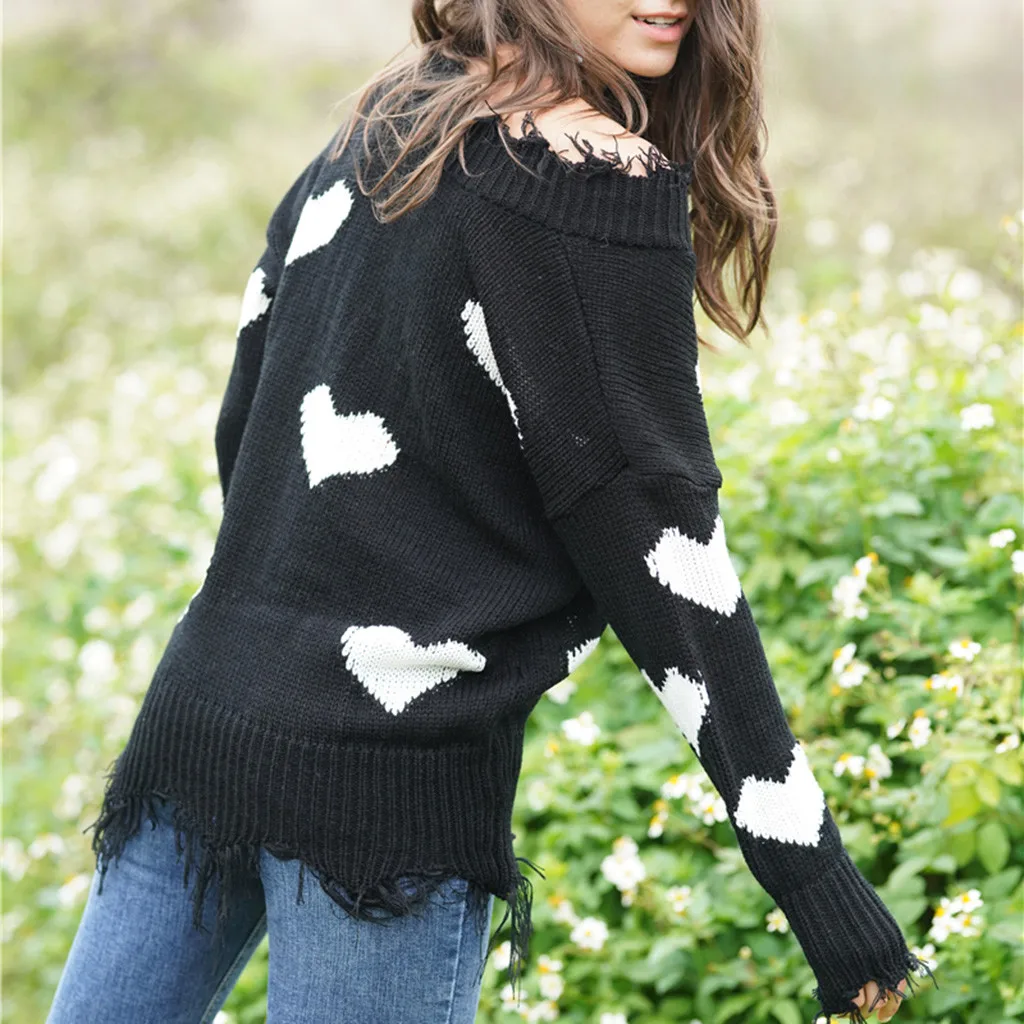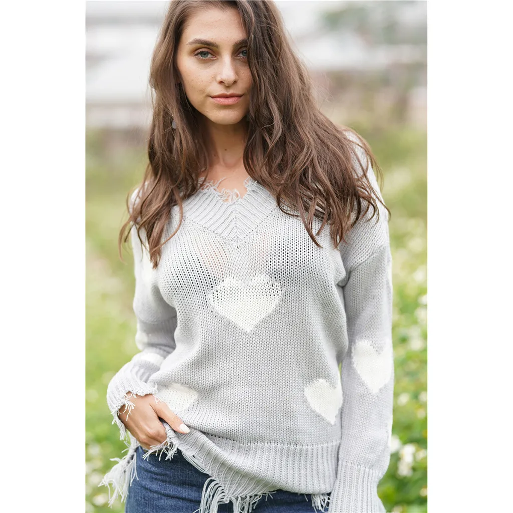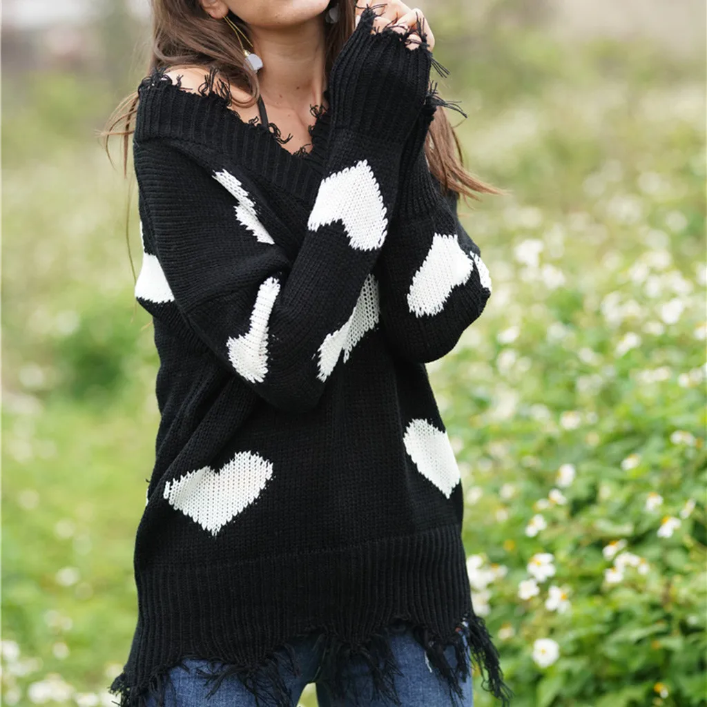 Женский свитер с открытыми плечами, повседневный вязаный Свободный пуловер с длинными рукавами и v-образным вырезом