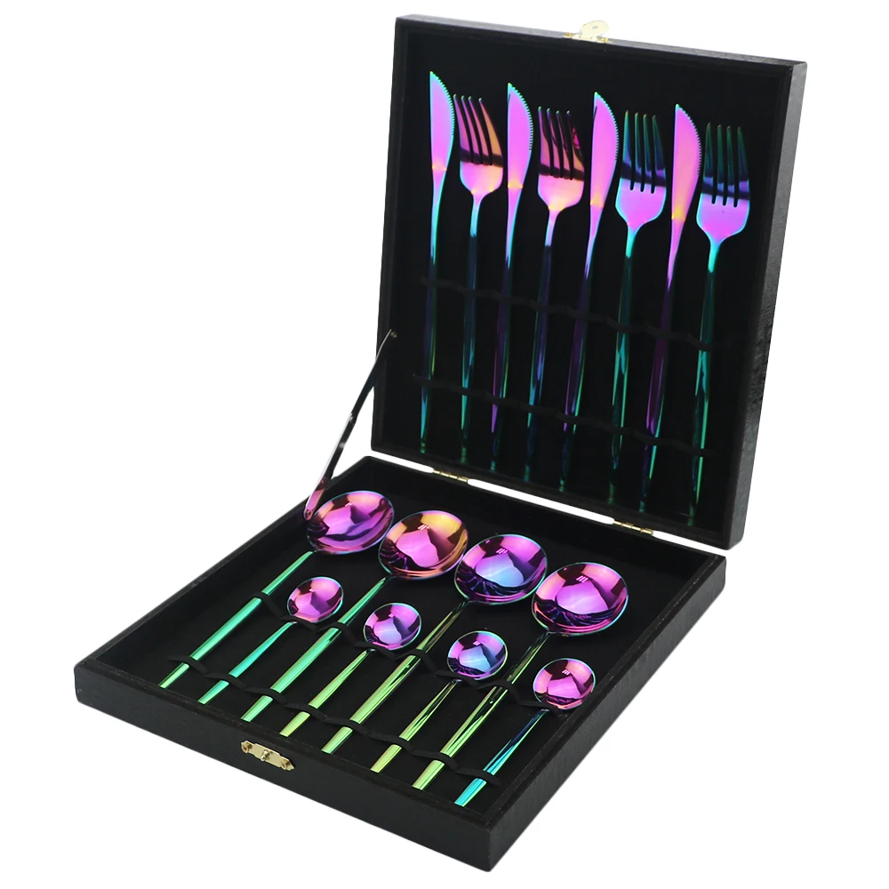 4pcs Black Dinnerware Set 18/10 Stainless Steel Cutlery Rainbow Dinner Set Knife Fork Spoon Silverware Set Kitchen Tableware Set