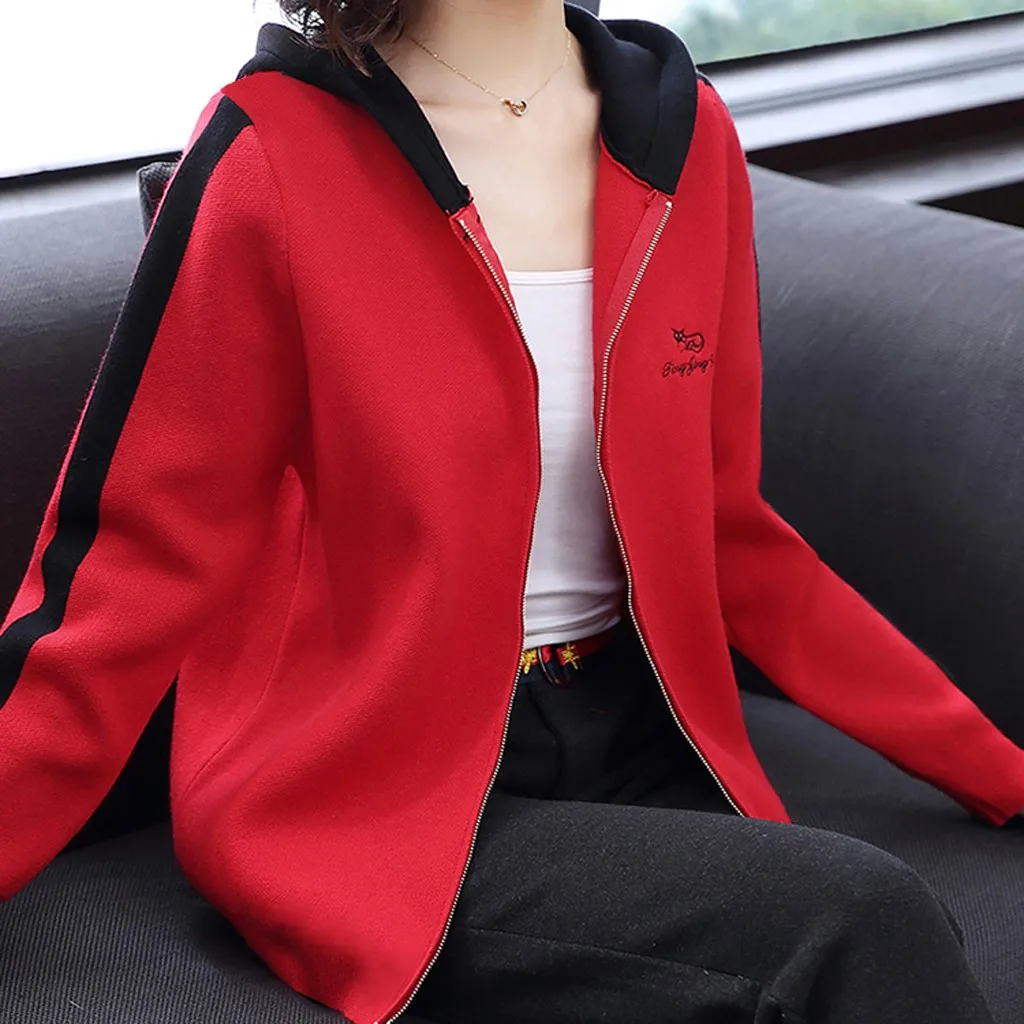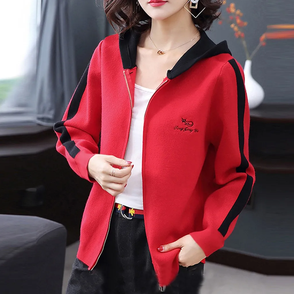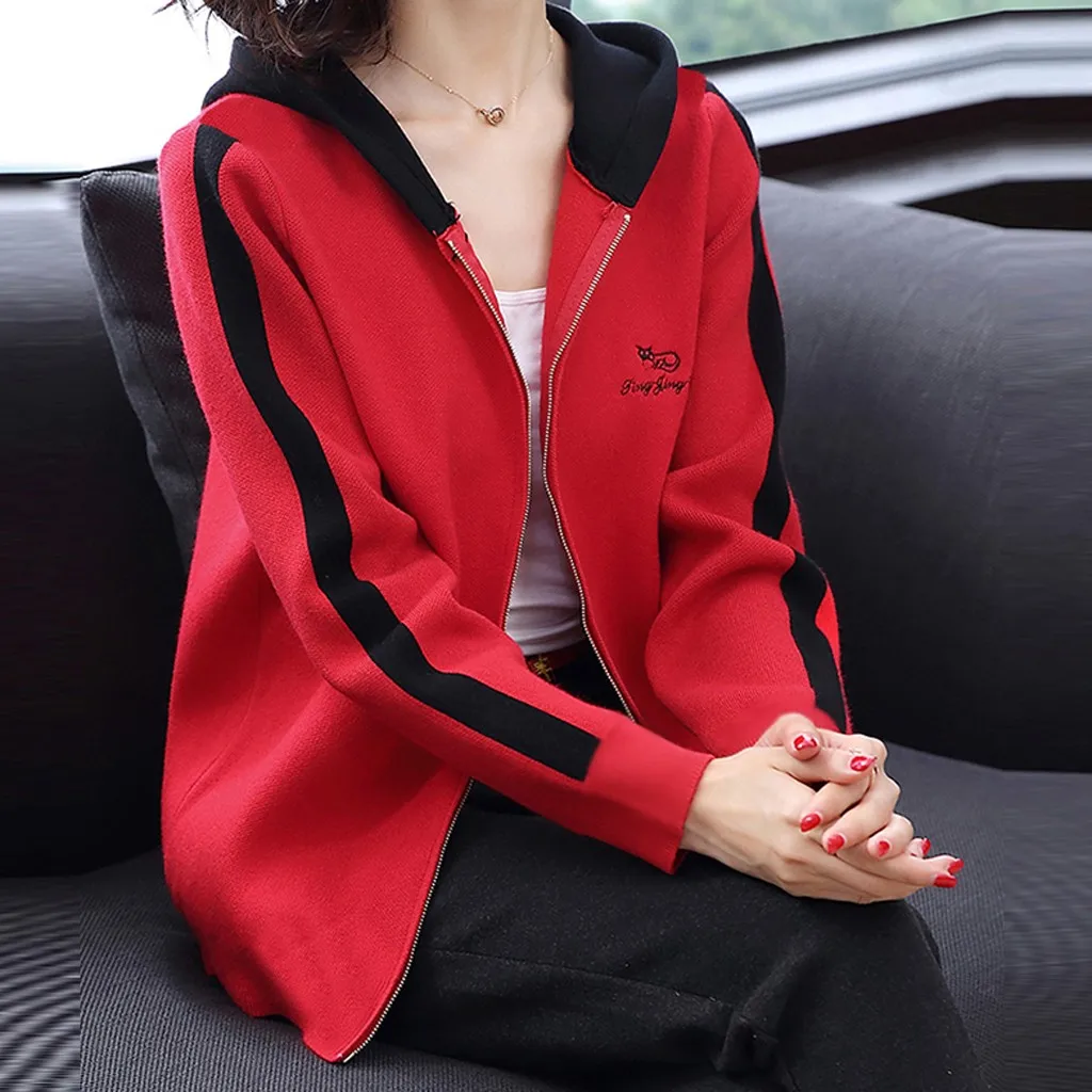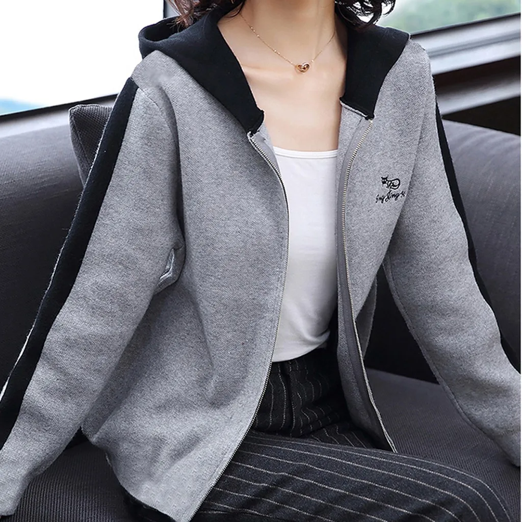 Модный женский кардиган с буквенным принтом, с капюшоном, с длинным рукавом, Спортивная кофта