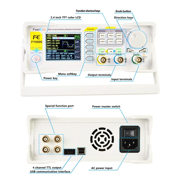 1. Использует технологию прямого цифрового синтезатора (DDS) и обеспечивает стабильные, точные, чистые и низкие сигналы искажений.